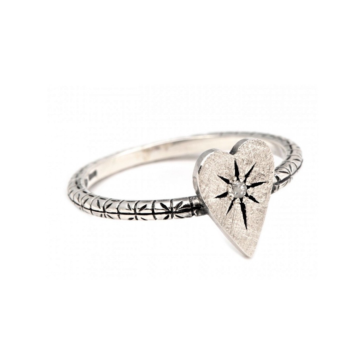 Wenig ring 925 Silber satin und brüniert acht Juwelen in der Form eines Herzens mit Diamant Eis und Stengel gearbeitet-AI359 2