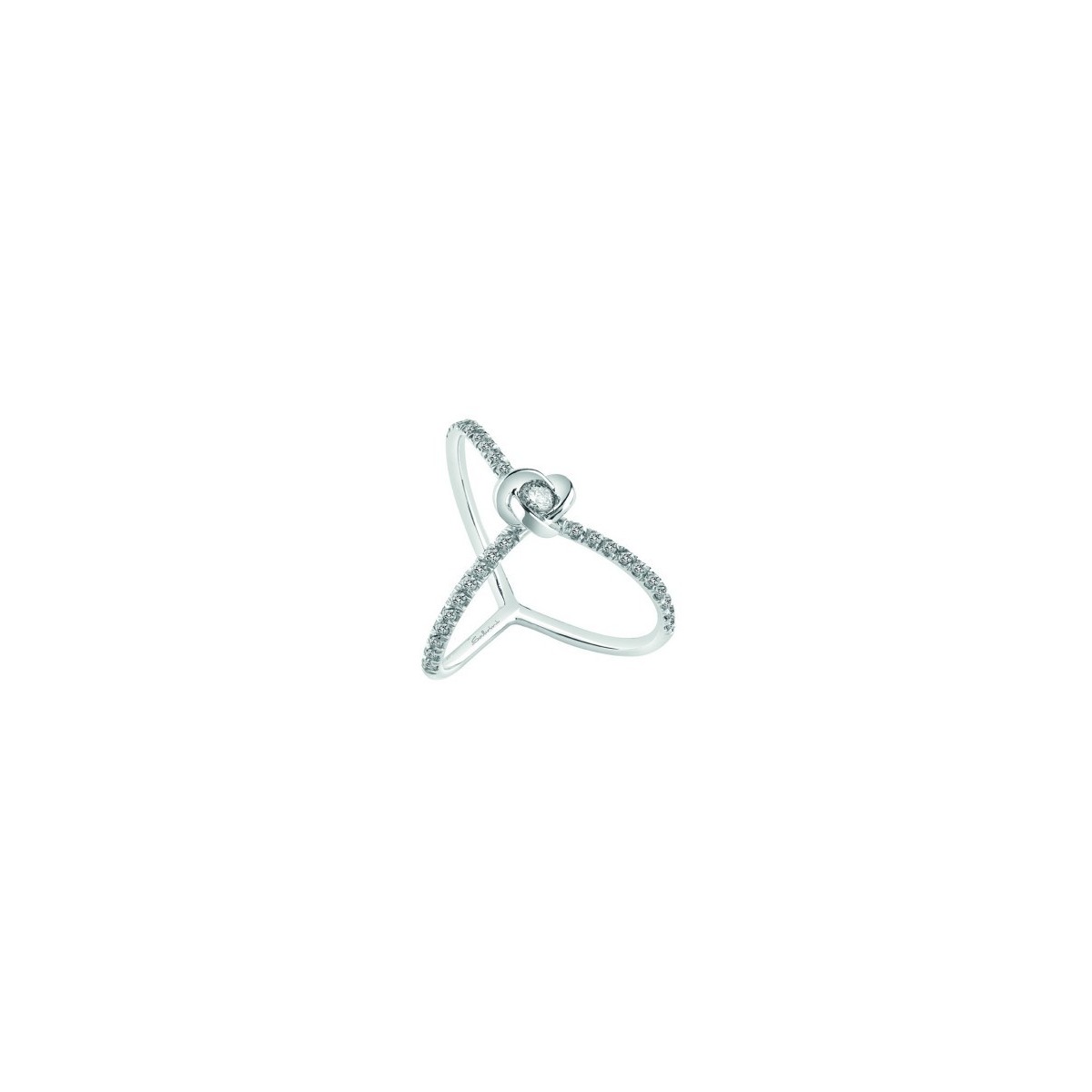 Bud-Linie-Ring in 18 Karat Weißgold mit natürlichen Diamanten, gebildet von 3 Brillantti-Datei mit Solitaire Central, verwendbar auch von pinky
