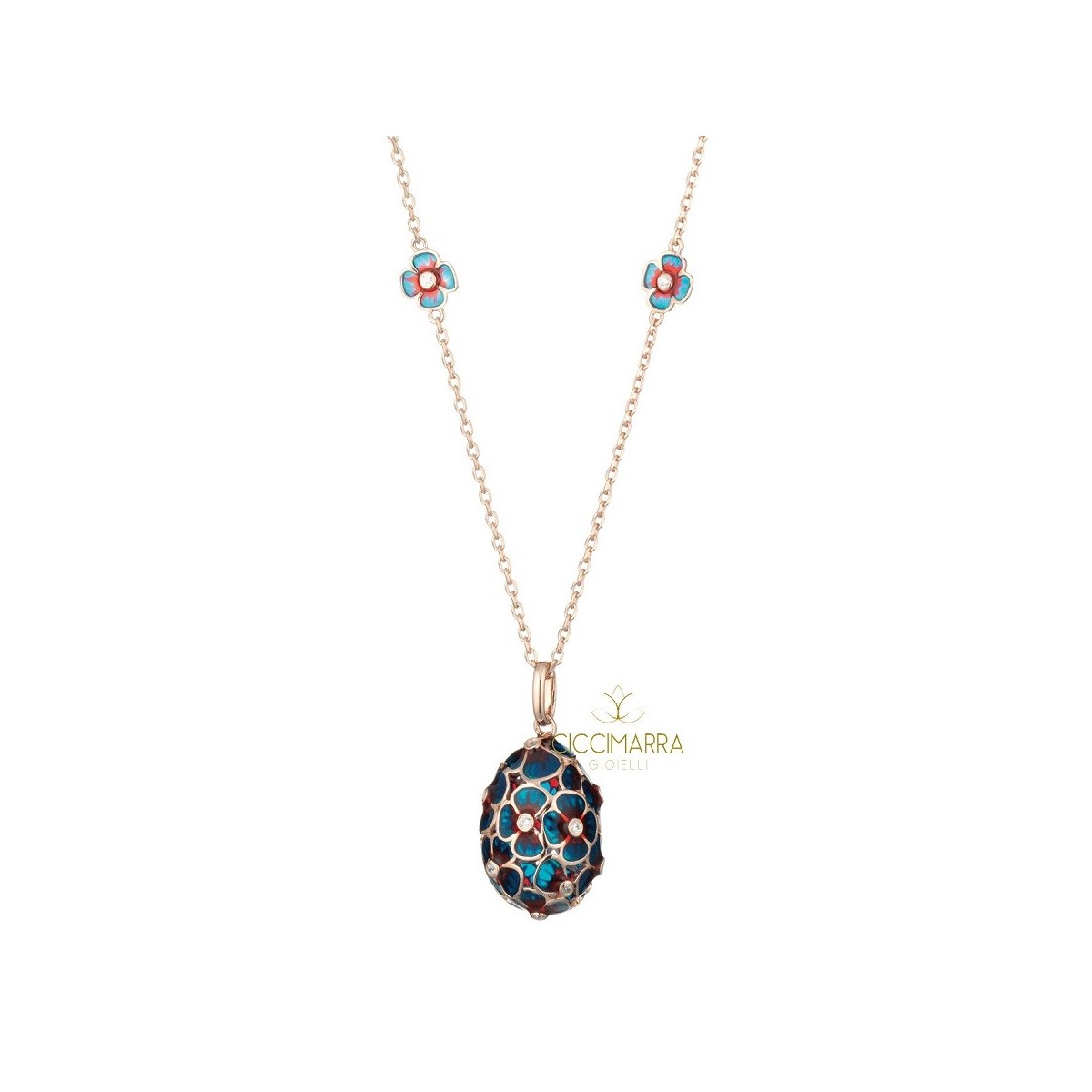Elegante Kettenhalskette mit 925er Silber überzogenem Roségold, blauem Emaille und weißen Zirkonen