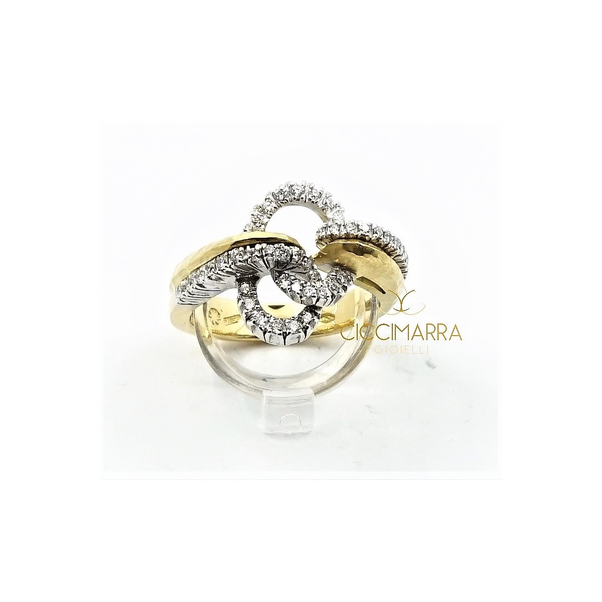 Ring aus gehämmertem Gelbgold und 18 Karat Weiß mit natürlichen Diamanten im Brillantschliff - KA5266