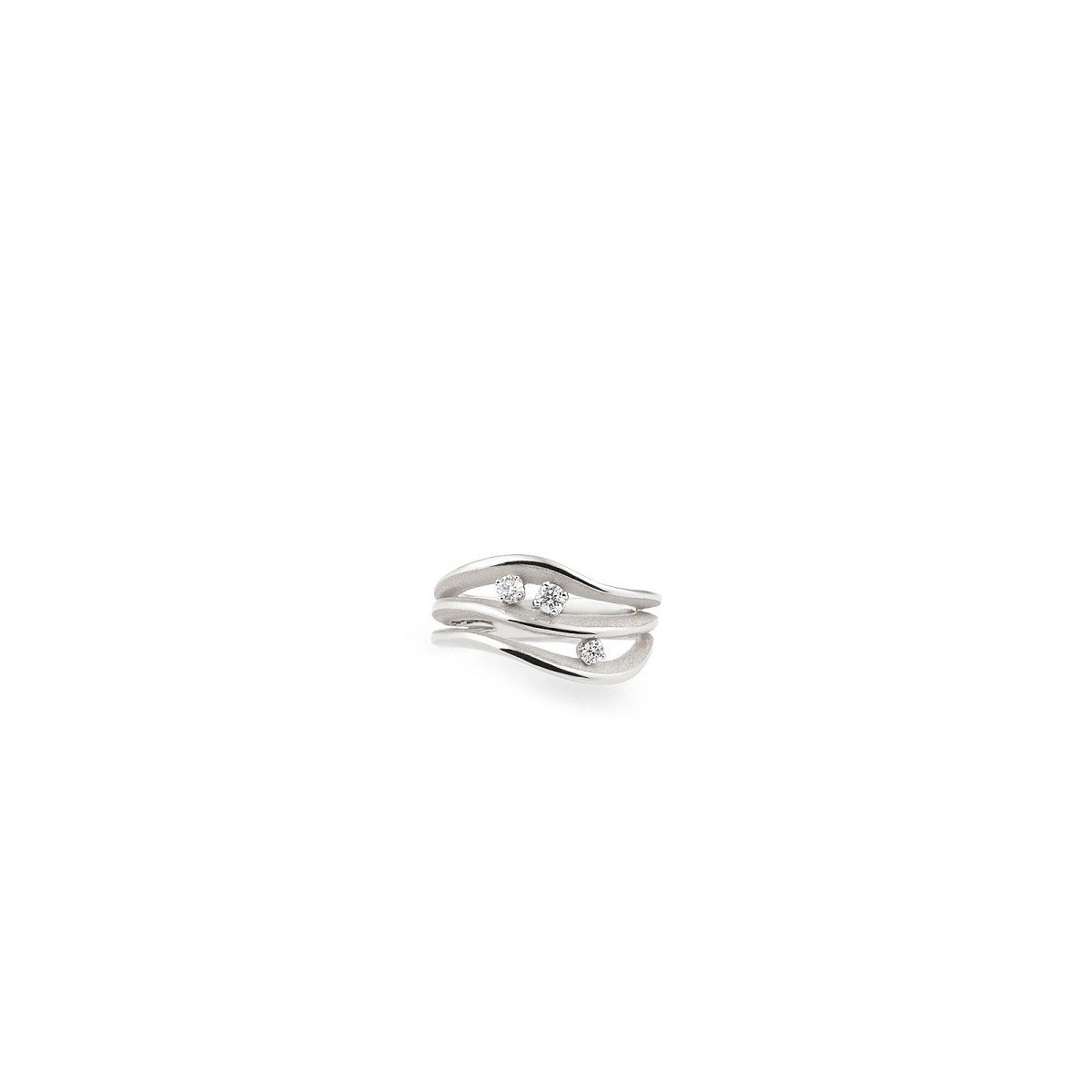 Essential Luxor Collection Ring mit drei welligen Bändern in Weißgold, 750 Pal Palladium poliert und satiniert mit drei natürlichen Diamanten