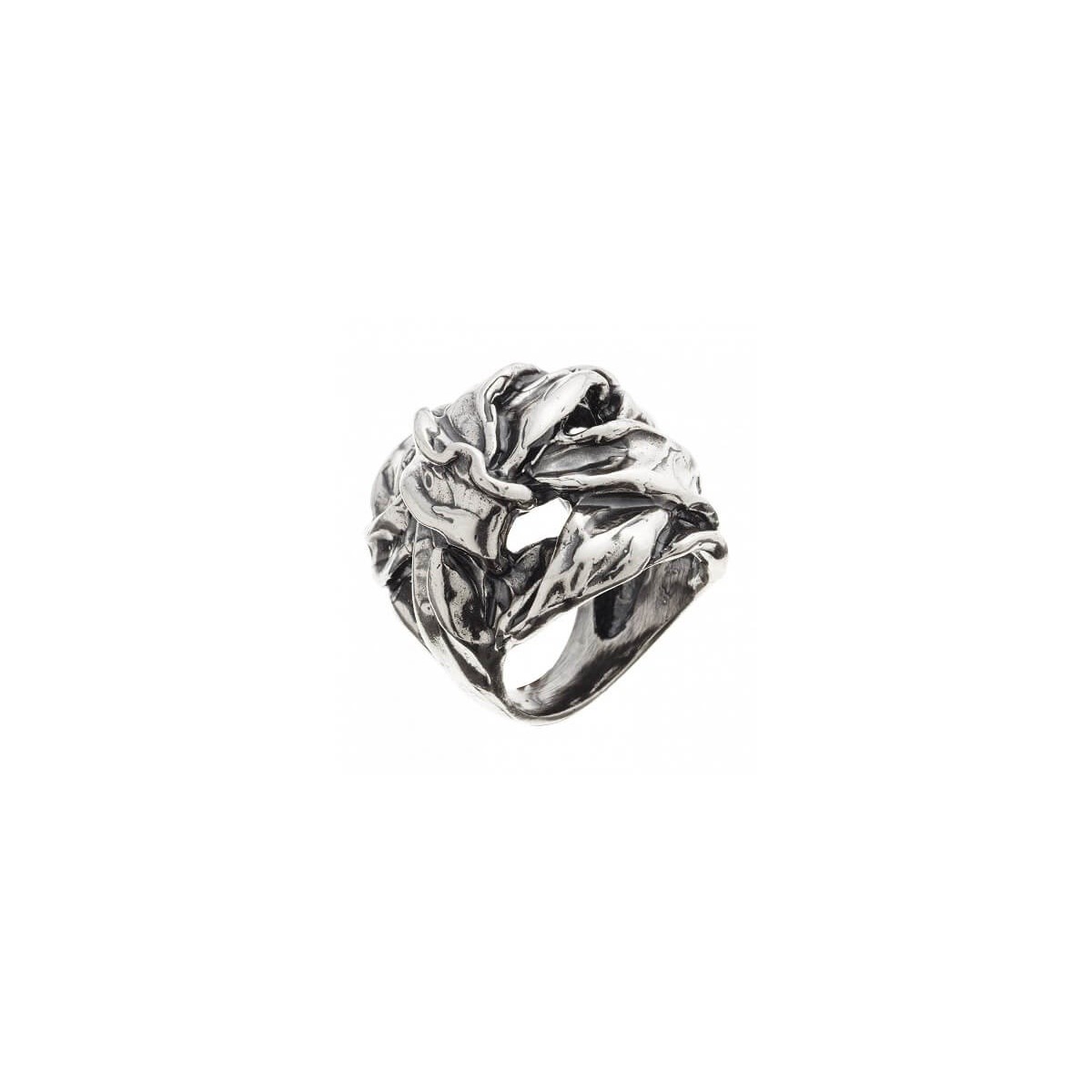 Großer Bandring aus 925er Silber, Kollektion 'Nastro D'Argento', stellt Bänder dar, die sich um die Finger wickeln, Größe 14.