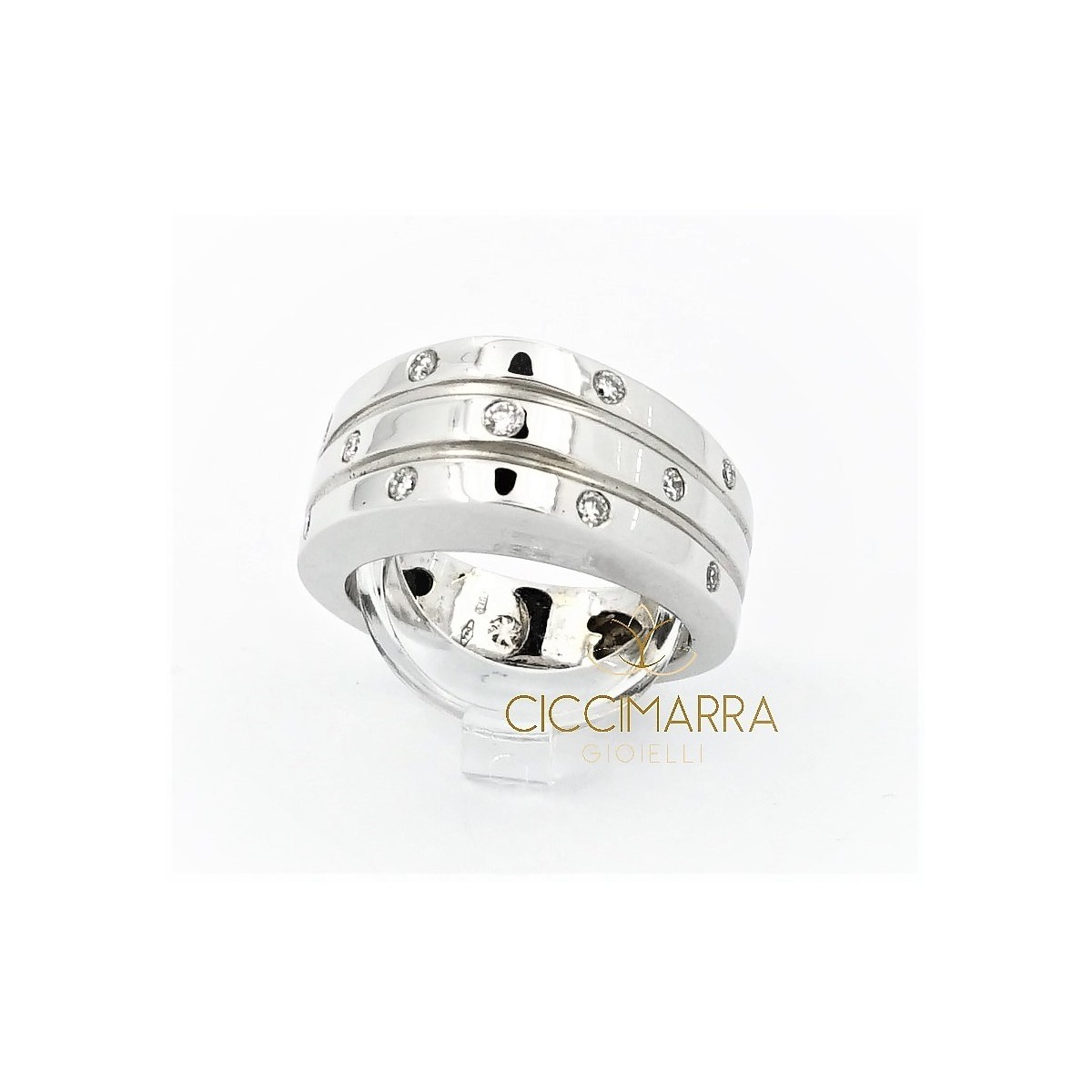 Ring aus gehämmertem Weißgold mit Diamanten