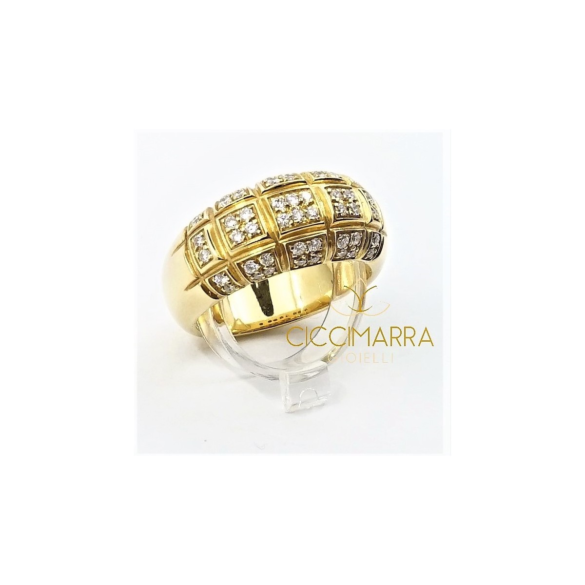Abgerundeter Bandring aus 18 Karat Gelbgold, poliert, quadratisches Design aus Diamanten im Brillantschliff