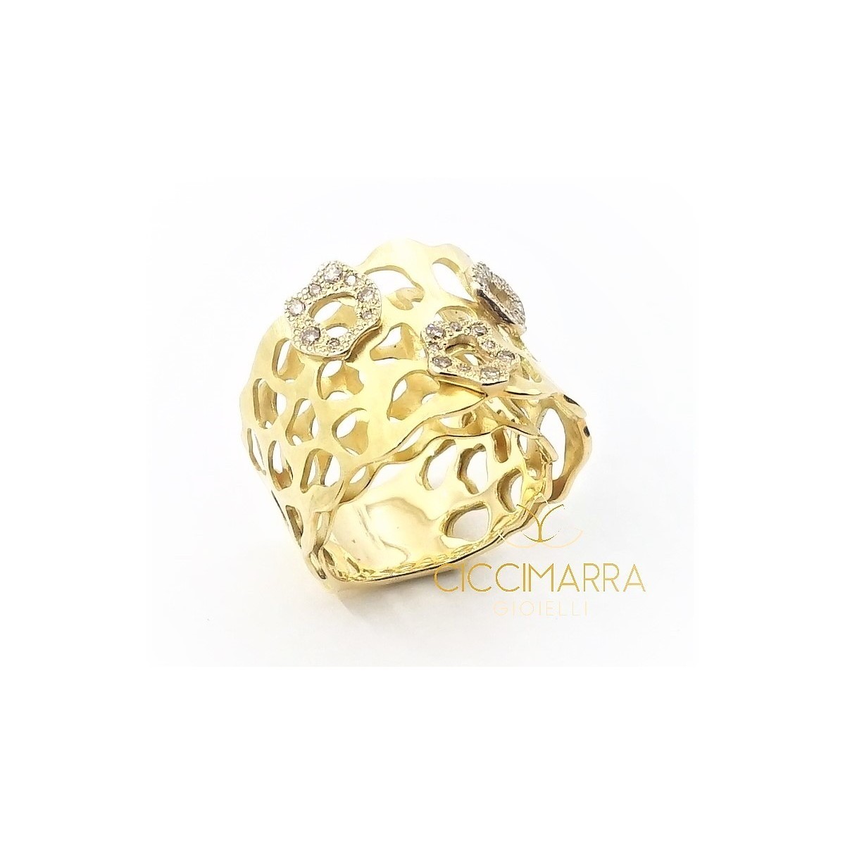 Doppelt perforierter Bandring aus 18 Karat Gelbgold, satiniert mit braunen Diamanten im Brillantschliff