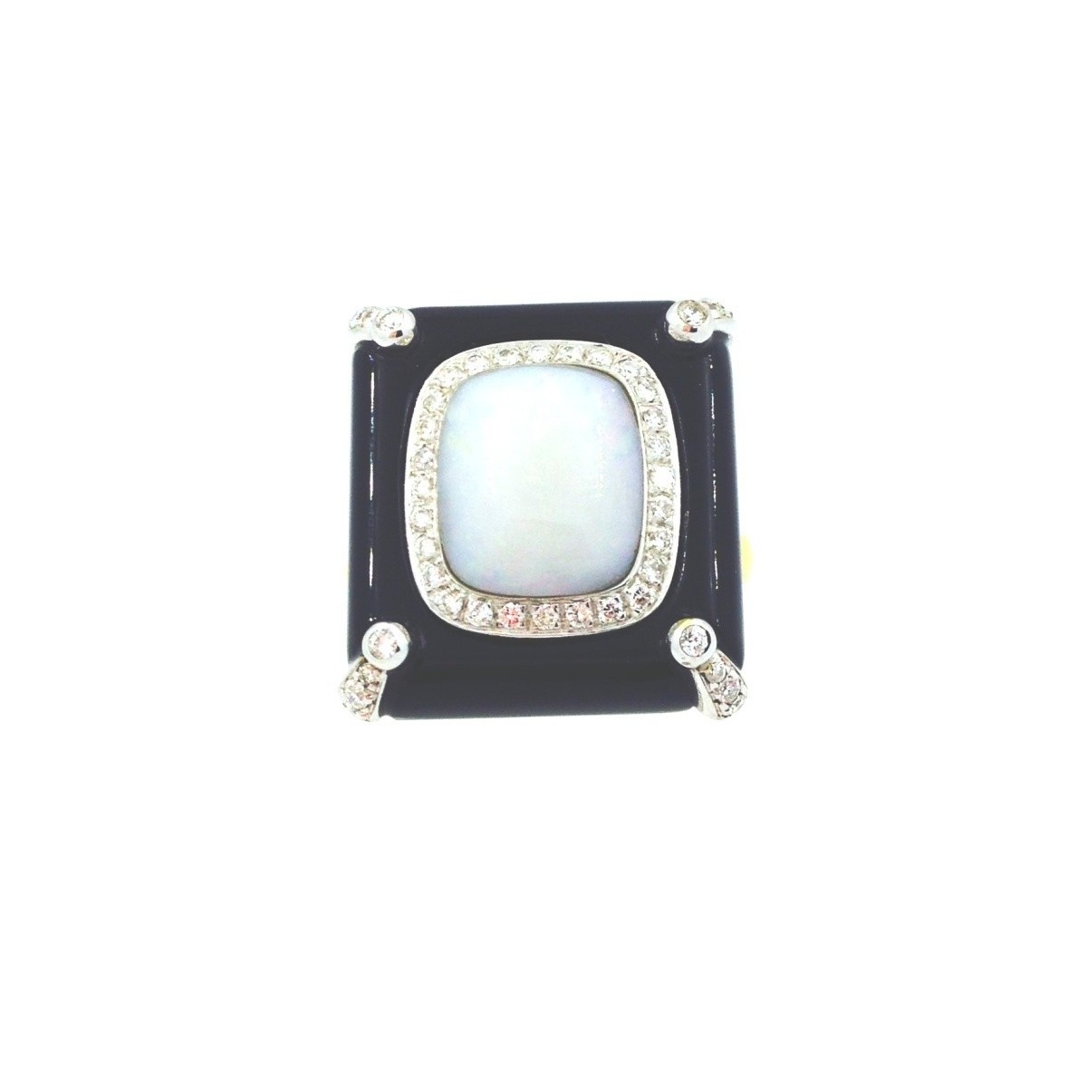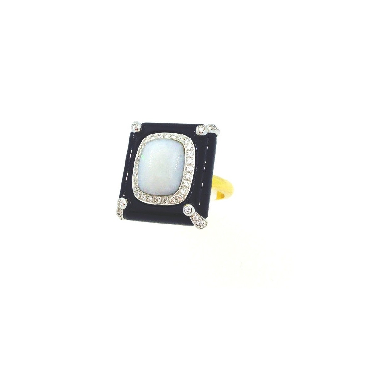 Bibigì Ring in gelb und Weissgold 750 mit Opal ‰, Runde natürliche Diamanten, Brillant Schliff und Onyx