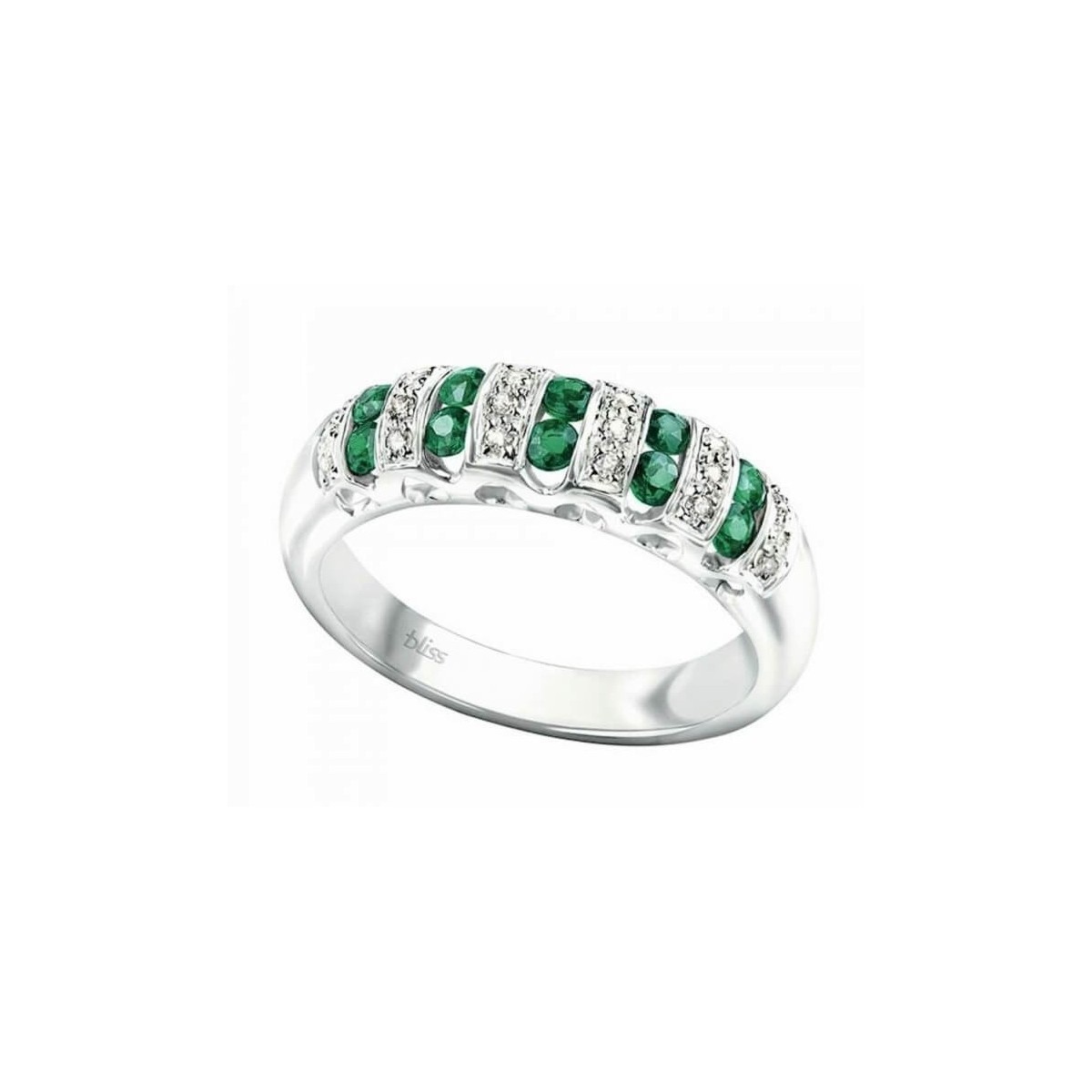 Cabaret Line Bandring von Bliss aus 18 kt Weißgold mit natürlichen Smaragden im Rundschliff von insgesamt 0,70 Karat und natürlichen Diamanten im Brillantschliff von insgesamt 0,10 Karat