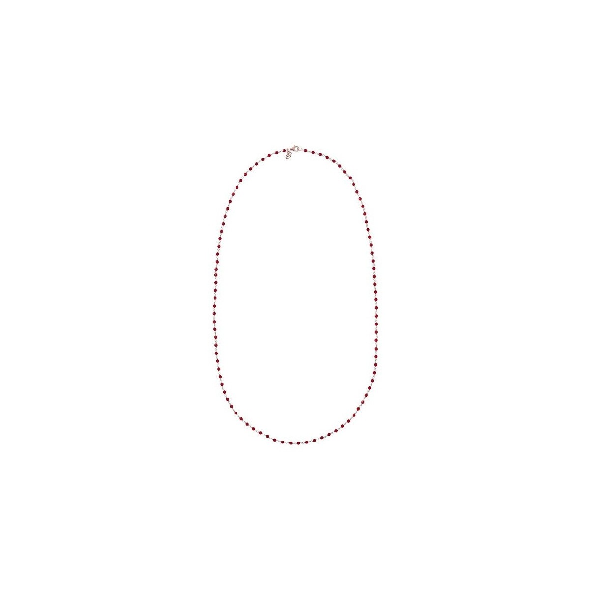 Lange Halskette, die an einen Rosenkranz erinnert, bestehend aus einfachen, mit Natursteinkugeln durchsetzten Ringen, 75 cm lang