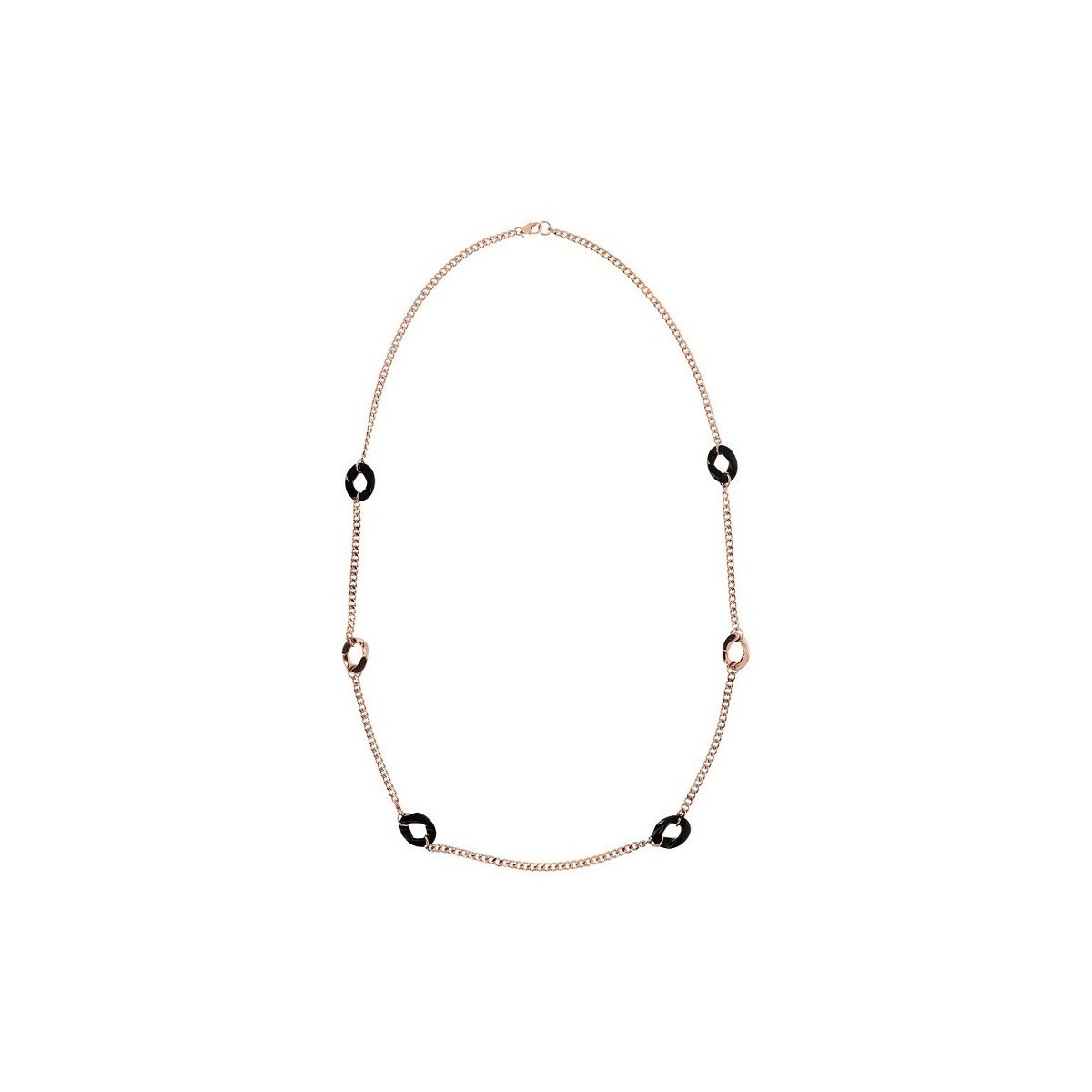 Rose vergoldete Halskette mit schwarzen Onyx-Steinen. Länge 96,50 cm