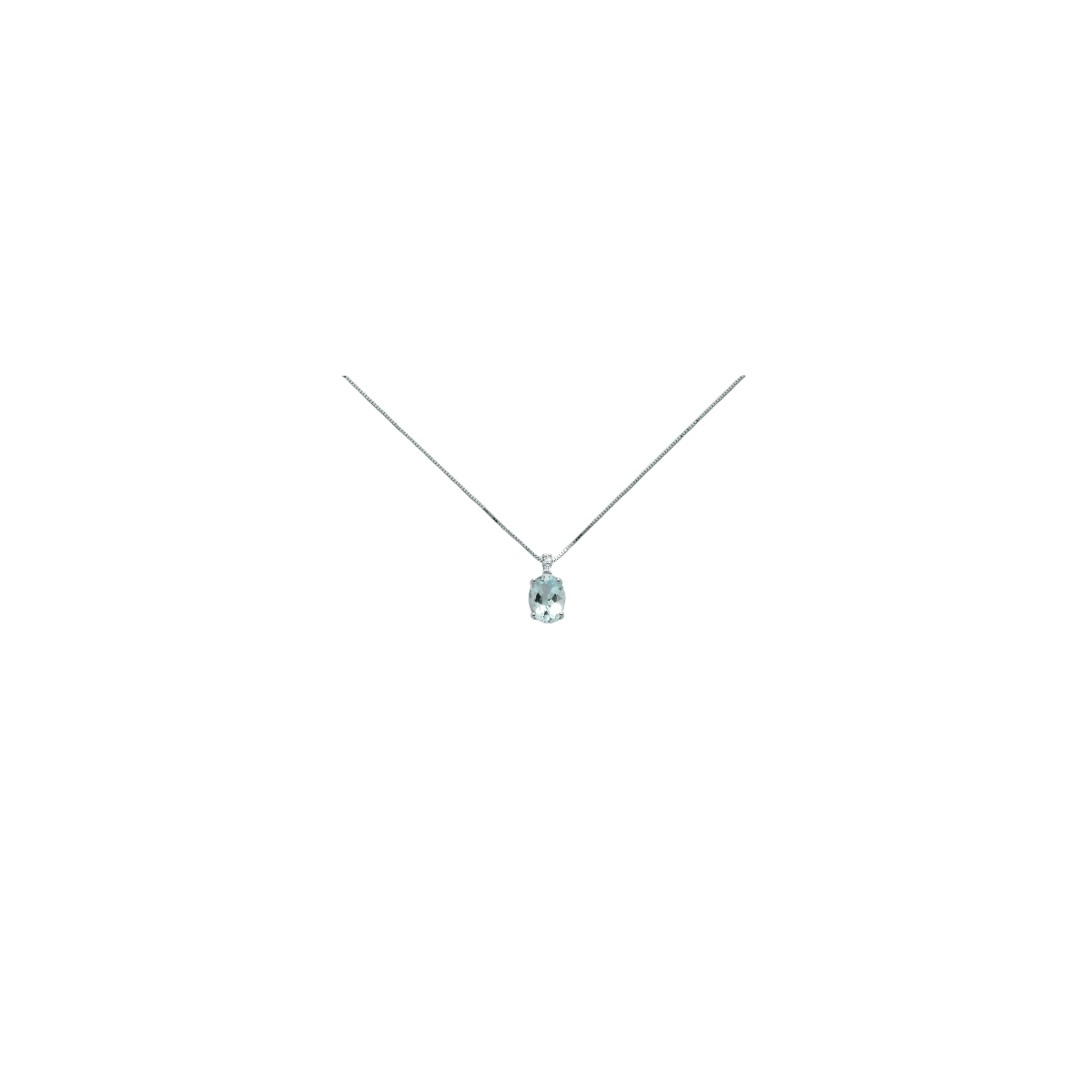 Halskette aus 18kt Weißgold mit einer Länge von 42 cm mit einem Aquamarin-Anhänger im Ovalschliff von 8x6 mm von 1 kt, verziert mit zwei natürlichen Diamanten im Brillantschliff von 0,016 Karat.