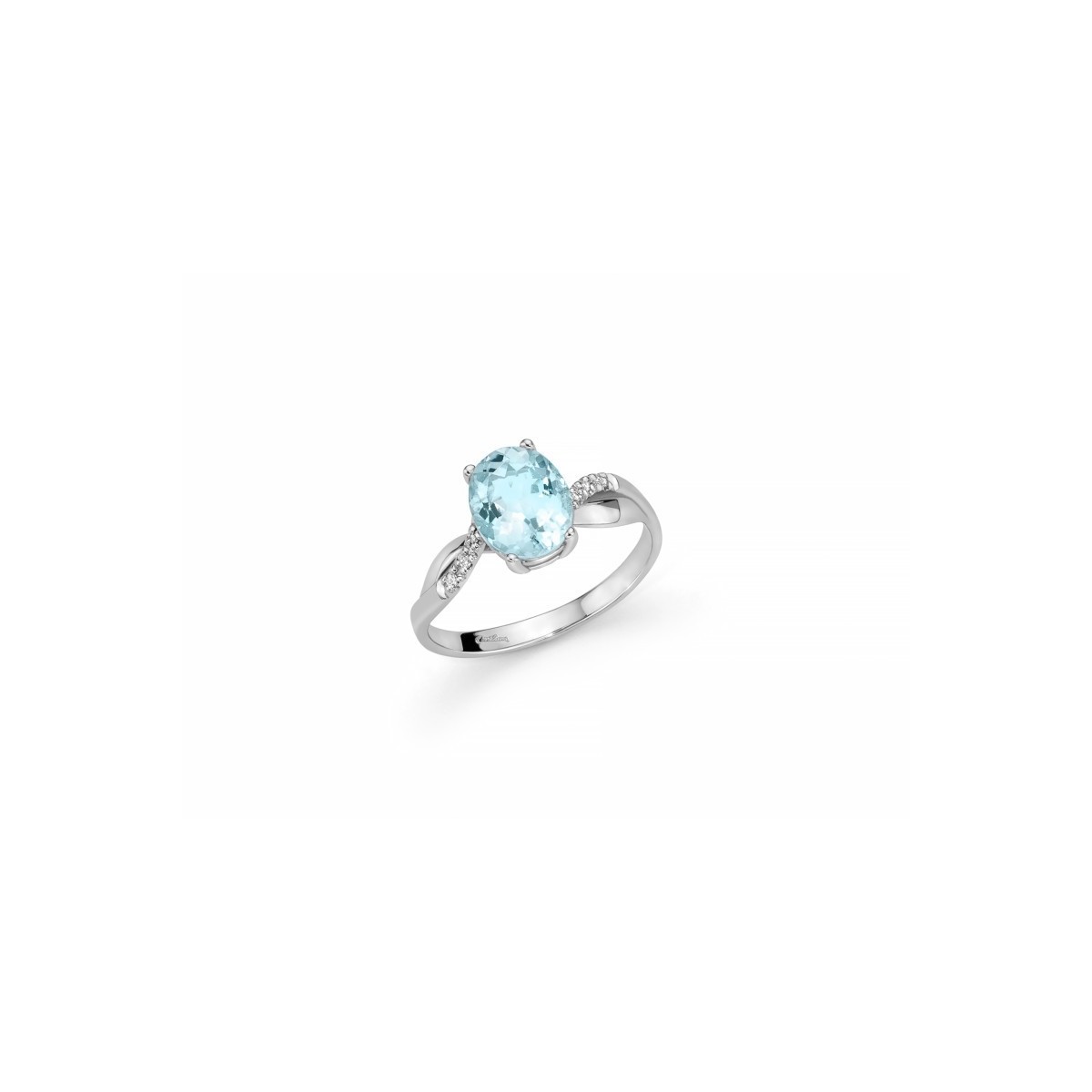 Miluna-Ring, Linie Le Gemme, aus 18 kt Weißgold mit natürlichem ovalen Aquamarin ct. 1,6 und natürliche Diamanten im Brillantschliff von 0,28 ct.