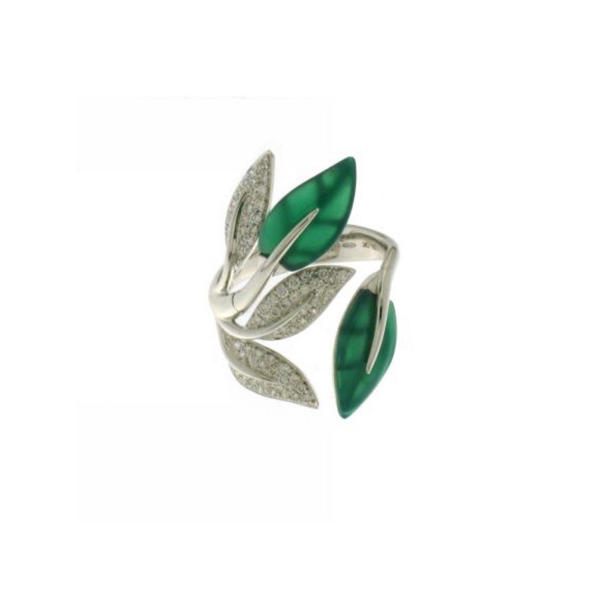 Ring 18 kt Weißgold Blatt große Schmucklinie mit brillanten natürlichen Diamanten und grünen Achat geschnitten
