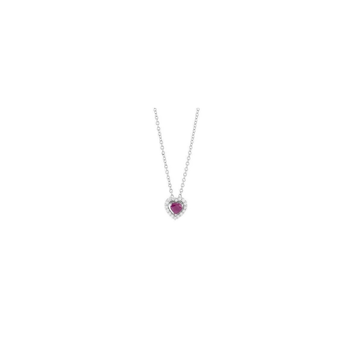 Halskette aus der Mini-Dora-Herzform-Kollektion in 18 Karat Weißgold mit natürlichen Diamanten und einem natürlichen Rubin im Herzschliff in der Mitte