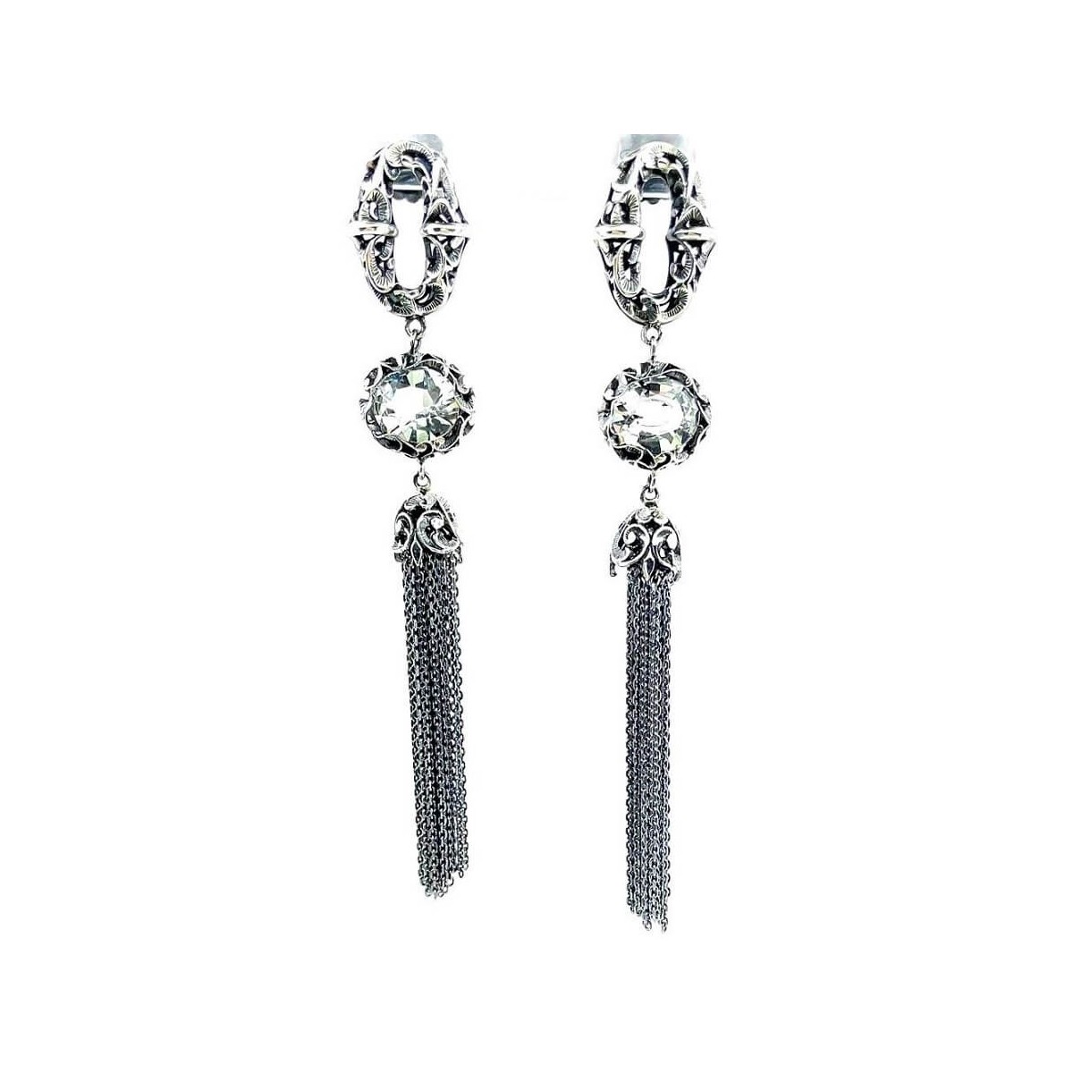 Maria und Luisa Anhänger Ohrringe in eingelegtem brüniertem Silber und Bergkristall OA0186 / V1 / S.