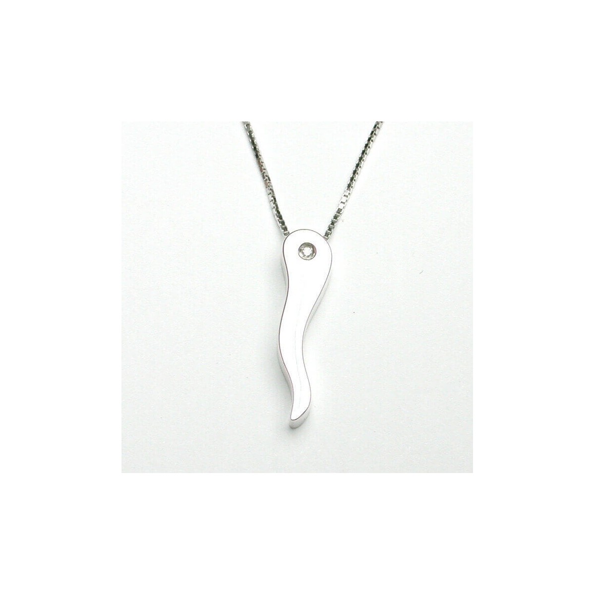 Damenhalskette von Salvini aus der Pegaso-Kollektion aus 18 Karat Weißgold und Anhänger bestehend aus einem Glückshorn, verziert mit einem kleinen natürlichen Diamanten im Brillantschliff von insgesamt 0,01 Karat.