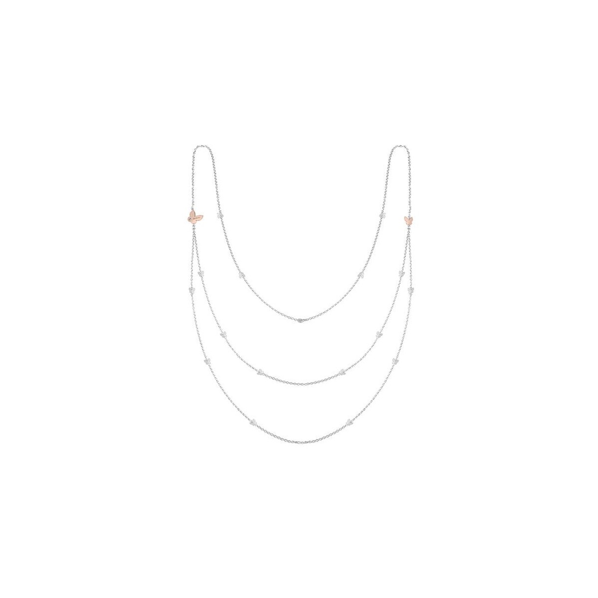 Damenhalskette von Salvini aus der Minimal Sautoir-Kollektion, hergestellt mit einer Dreifachkette aus 9 Karat Weißgold. Das Schmuckstück ist mit einer Abwechslung aus Schmetterlingen aus 9-karätigem Weiß- und Roségold mit kleinen natürlichen Diamanten im Brillantschliff von 0,01 Karat verziert.