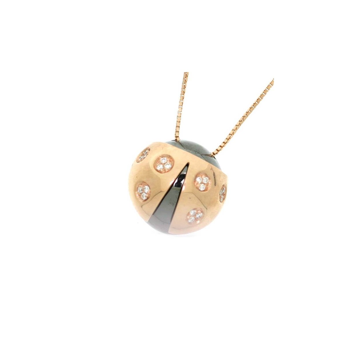 Salvini-Damenhalskette aus der Coccinelle-Kollektion aus 18-karätigem Roségold und Marienkäfer-Anhänger bestehend aus einem Hämatit-Edelstein mit Roségold, verziert mit natürlichen Diamanten im Brillantschliff von insgesamt 0,14 Karat.