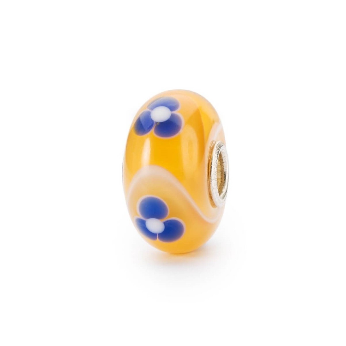 Glasperlen mit gelber silberner Niete mit blauen Blumen