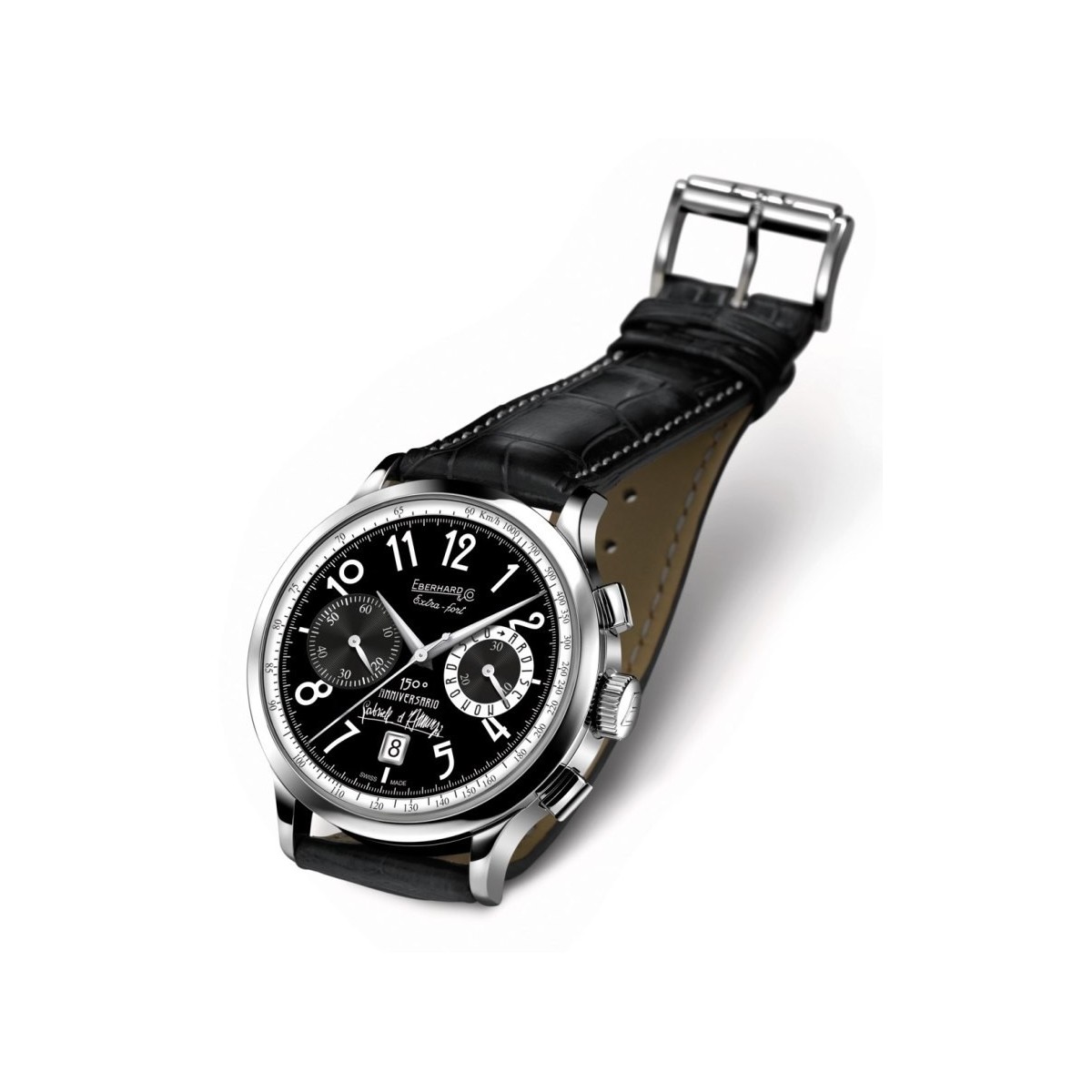 Eberhard Extra-Fort Gabriele D'annunzio Limited Edition Black Dial Lederarmband zu sehen.
