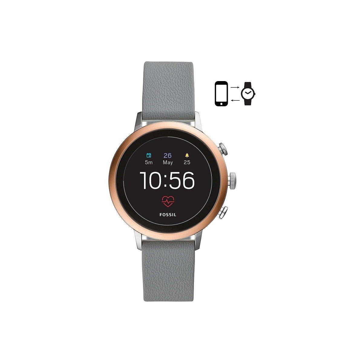 Damenuhr aus Leder mit 13 mm Stahlgehäuse und Rosenring, Smartphone-Funktionen, Amoled-Touchscreen-Glas, Q Venture Hr; Android-Betriebssystem