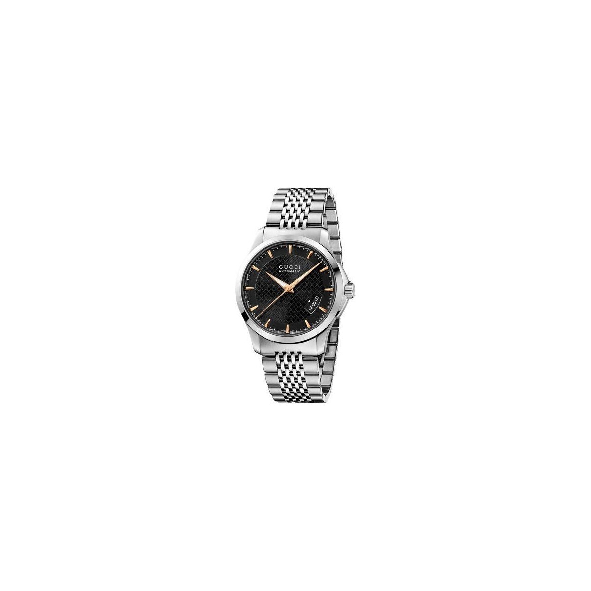 Der Uhr Männer Gucci G-Timeless automatische ist ausgestattet mit einem Edelstahl-Gehäuse und Armband mit Diamant-Muster schwarz Zifferblatt, für elegante und raffinierte Mann aufmerksam auf Informationen