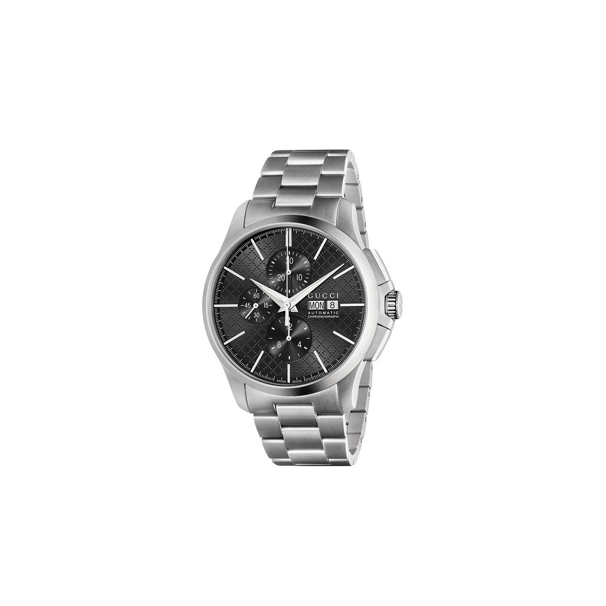 Gucci G-Timeless Uhren-Automatik ist mit einem Edelstahl-Gehäuse und Armband mit schwarzen Diamanten Muster wählen, für elegante und raffinierte Liebe zum Detail ausgestattet.