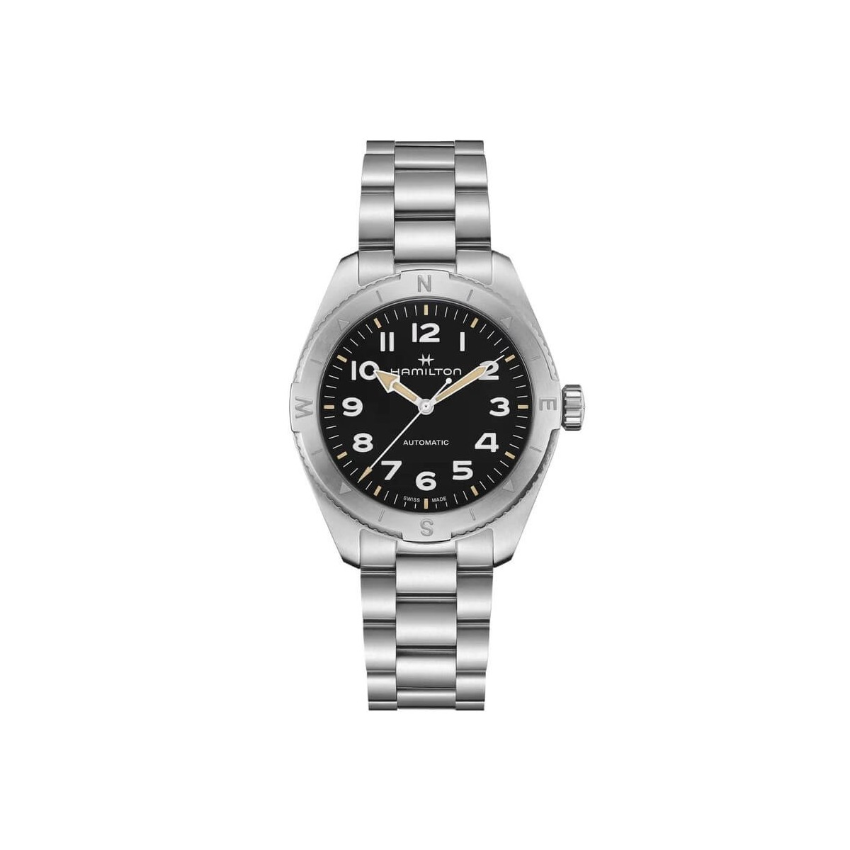 Die neue Hamilton Khaki Field-Kollektion präsentiert die Expedition-Uhr, die dank ihrer Kompass-Design-Lünette, die es Ihnen ermöglicht, sich anhand des Sonnenlichts zu orientieren, perfekt für Ihre Ausflüge außerhalb der Stadt geeignet ist.