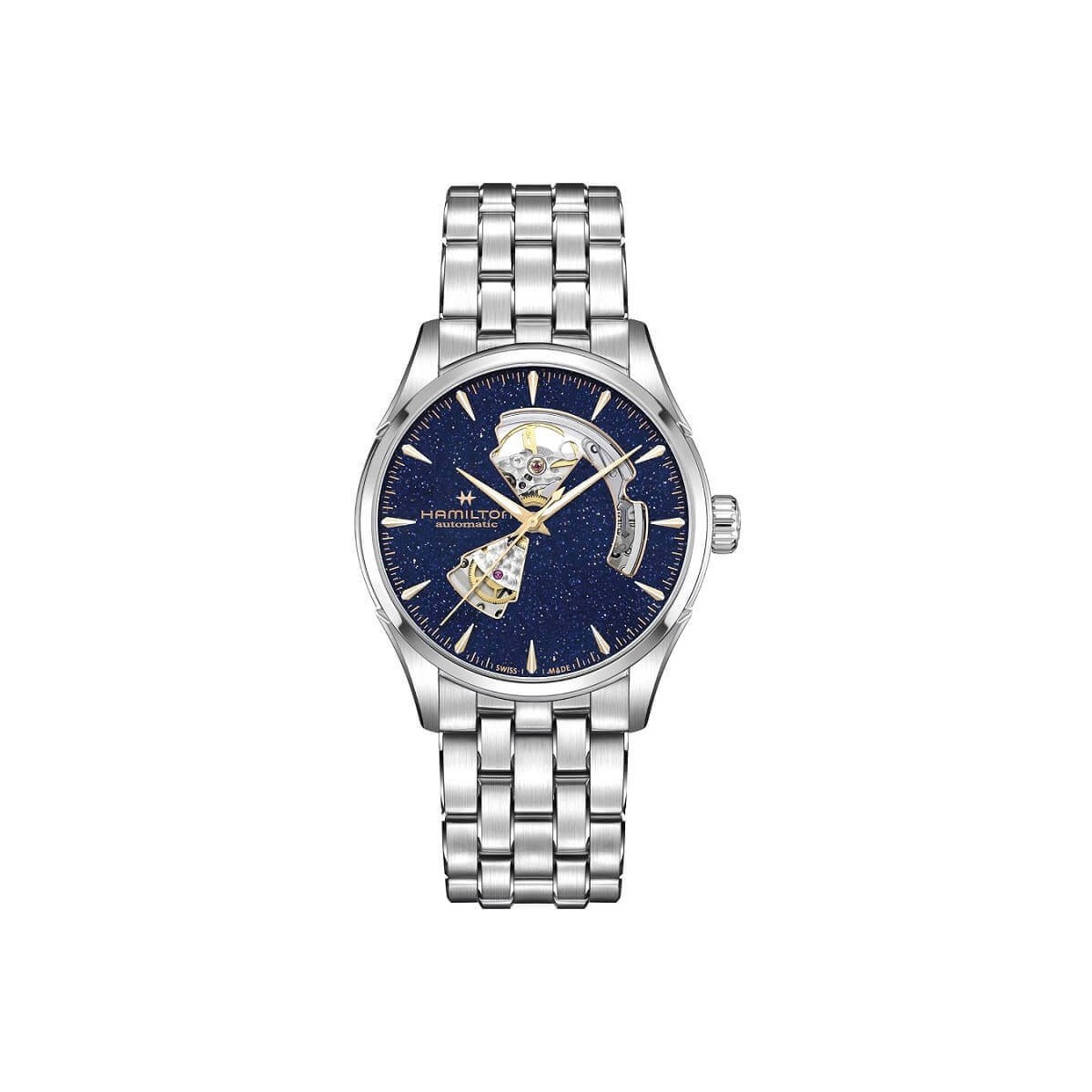 Herrenuhr, Linie Jazzmaster, nur automatische Zeitanzeige. 42-mm-Gehäuse und Stahlarmband, funkelndes nachtblaues Zifferblatt mit offenem Herzen.