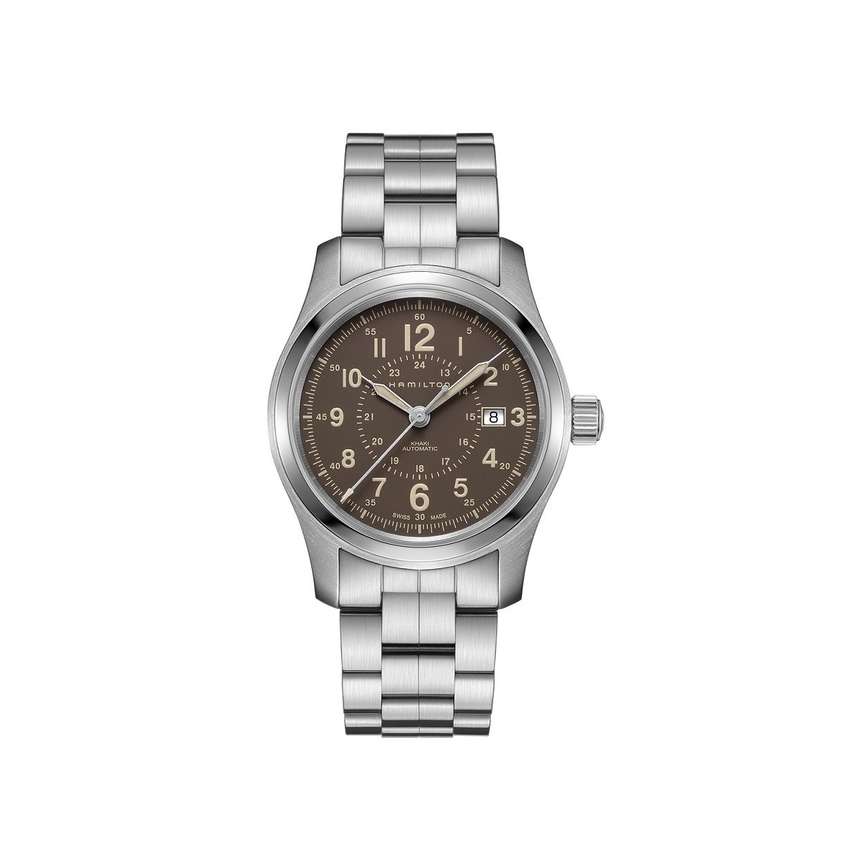 42 mm mit Automatikwerk Khaki Feld automatische h-10 80 Stunden Power Reserve Edelstahl Uhrengehäuse und Armband, weißes Zifferblatt mit Indizes beige