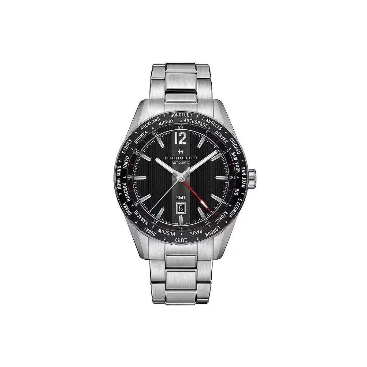Broadway-Linie Herrenuhr mit Gehäuse und Armband aus Stahl, Automatik-Datumsanzeige mit Datumsanzeige, schwarzem Ton-in-Ton-Zifferblatt und lumineszierender Spitze