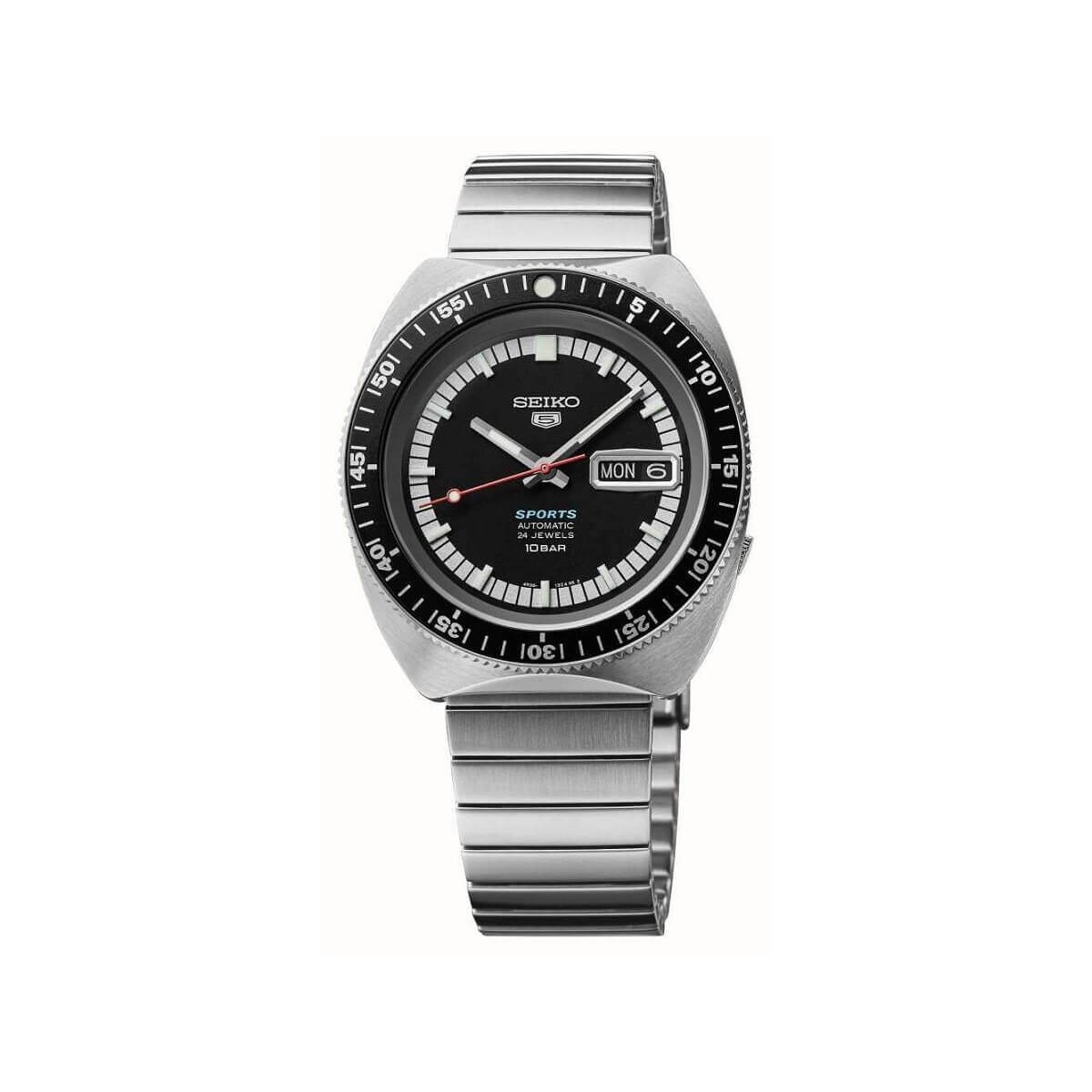 Seiko Sports 55th Anniversary Limited Edition Herrenuhr. Nur automatische Zeitanzeige, Armband und 40-mm-Stahlgehäuse mit schwarzem Zifferblatt.