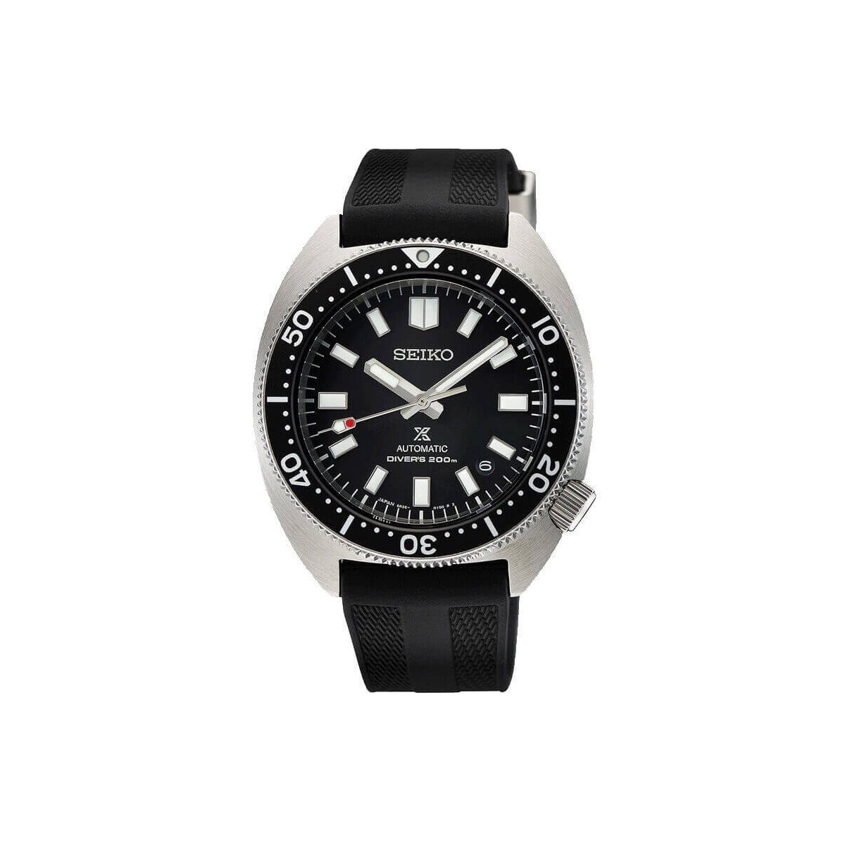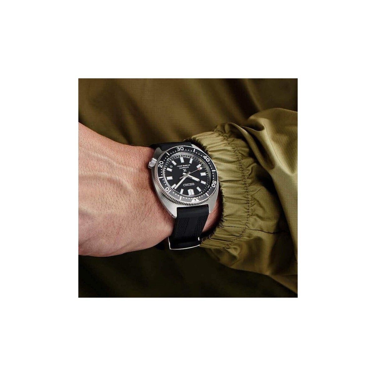 Als Neuinterpretation des klassischen Seiko-Taucheruhrenmodells aus dem Jahr 1968 verfügt diese Uhr sofort über das ikonische Seiko-Tartle-förmige Gehäuse aus brüniertem Stahl sowie das schwarze Zifferblatt und die einseitig drehbare Lünette.