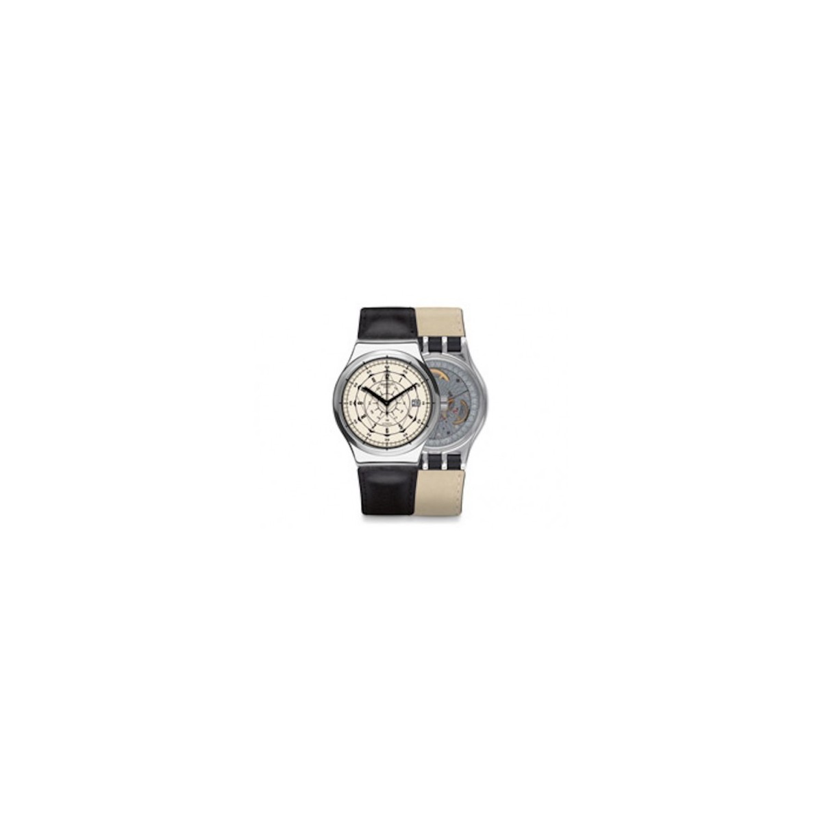 Movimetno Uhr-Wicklung line Ironie Sistem 51, schwarzes Lederband, geometrische Verarbeitung Cremacon Zifferblatt, Gehäuse aus Edelstahl mit Bewegung sichtbar zu glätten