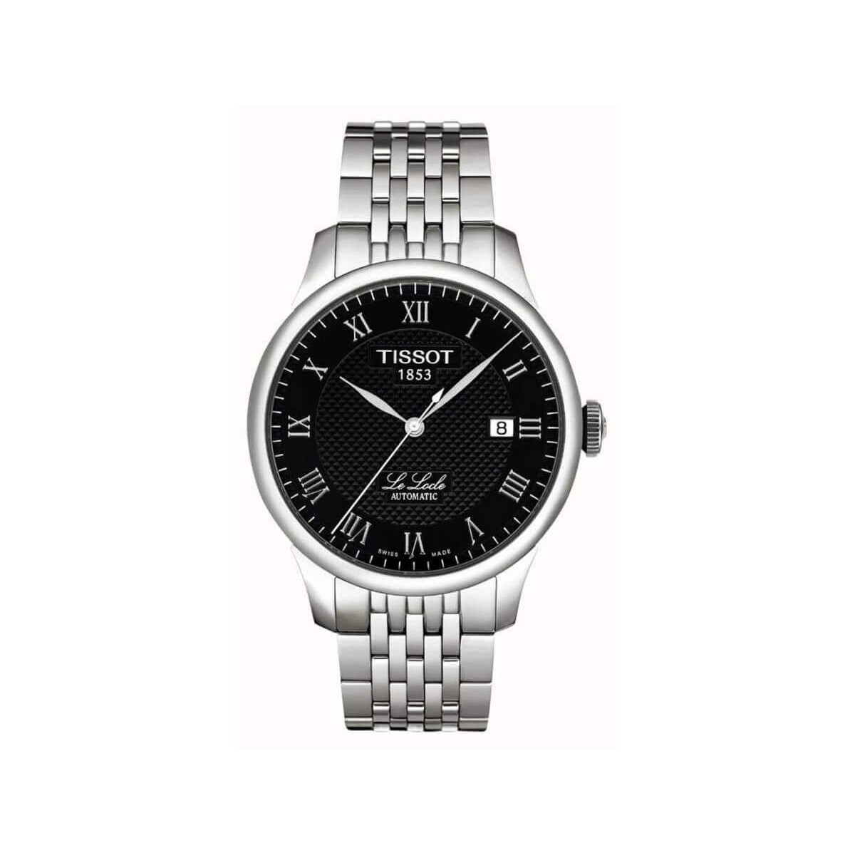 Tissot Herrenuhr Le Locle Linie mit Powermatic 80. Aus 316L Stahl, 40mm Gehäuse und schwarzes Zifferblatt, römische Ziffern und Stahlzeiger