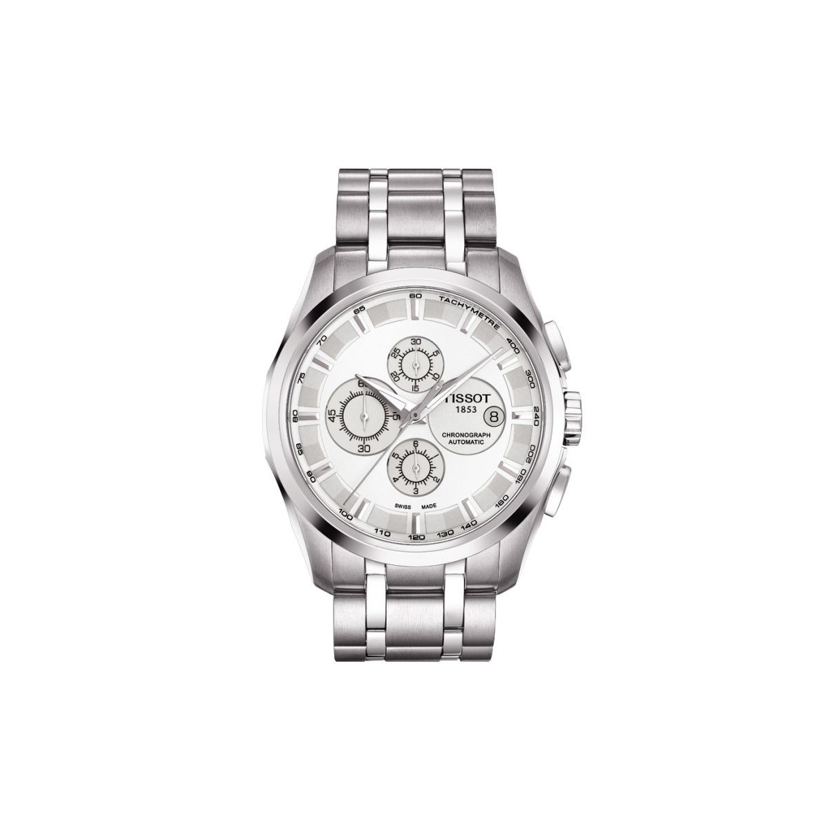 Tissot Couturier Chronograph Watch Chrononograph C 001,211 Autos mit Edelstahlgehäuse und Armband und einem silbernen Zifferblatt