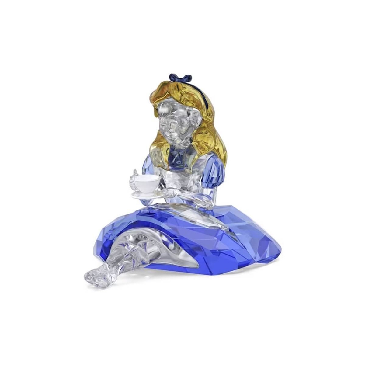 Hergestellt aus mehr als 430 Kristallfacetten in fröhlichen und lebendigen Farbtönen, darunter das Blau des Kleides und das Blond ihrer langen Haare.