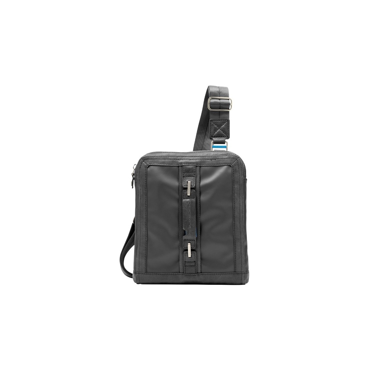 Piquadro Geldbörse schwarz Stoff Linie P-CUBE mit Schultergurt und Objekte