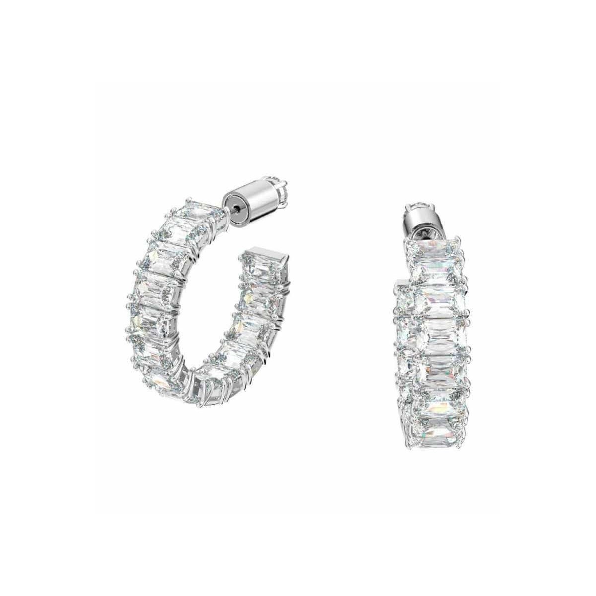 Mittelgroße Creolen aus der Millenia-Linie aus weißem Kristall im Achteckschliff mit einem eleganten rhodinierten Rahmen.