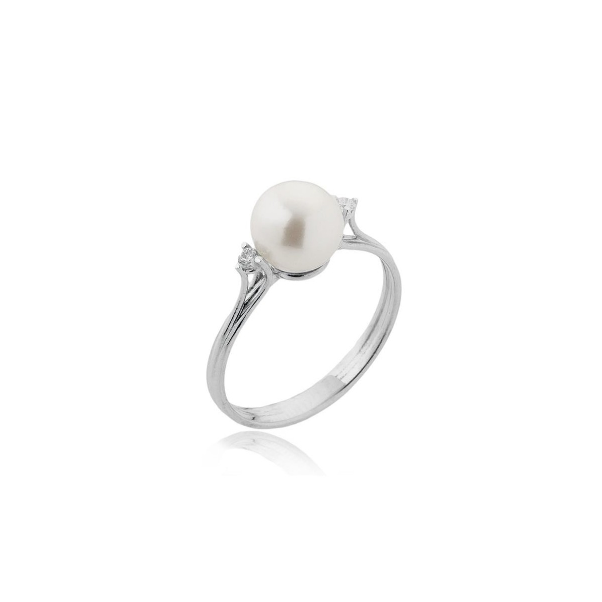 Ring 18 Karat Weissgold mit japanischen Akoya Perlen 8-8.5 mm-Kabeljau: 1APB085CC5140