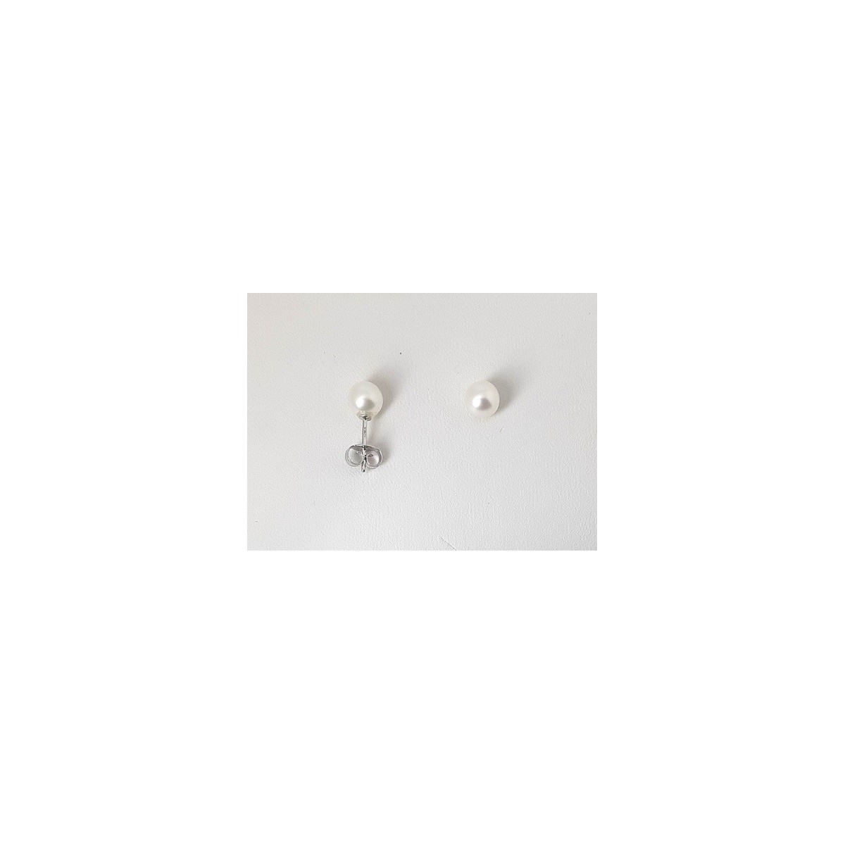 Ohrstecker aus 18 Karat Weißgold mit Süßwasserperlen von 4,5–5 mm Durchmesser. Schmetterlingsverschluss – M.GTR45 BL