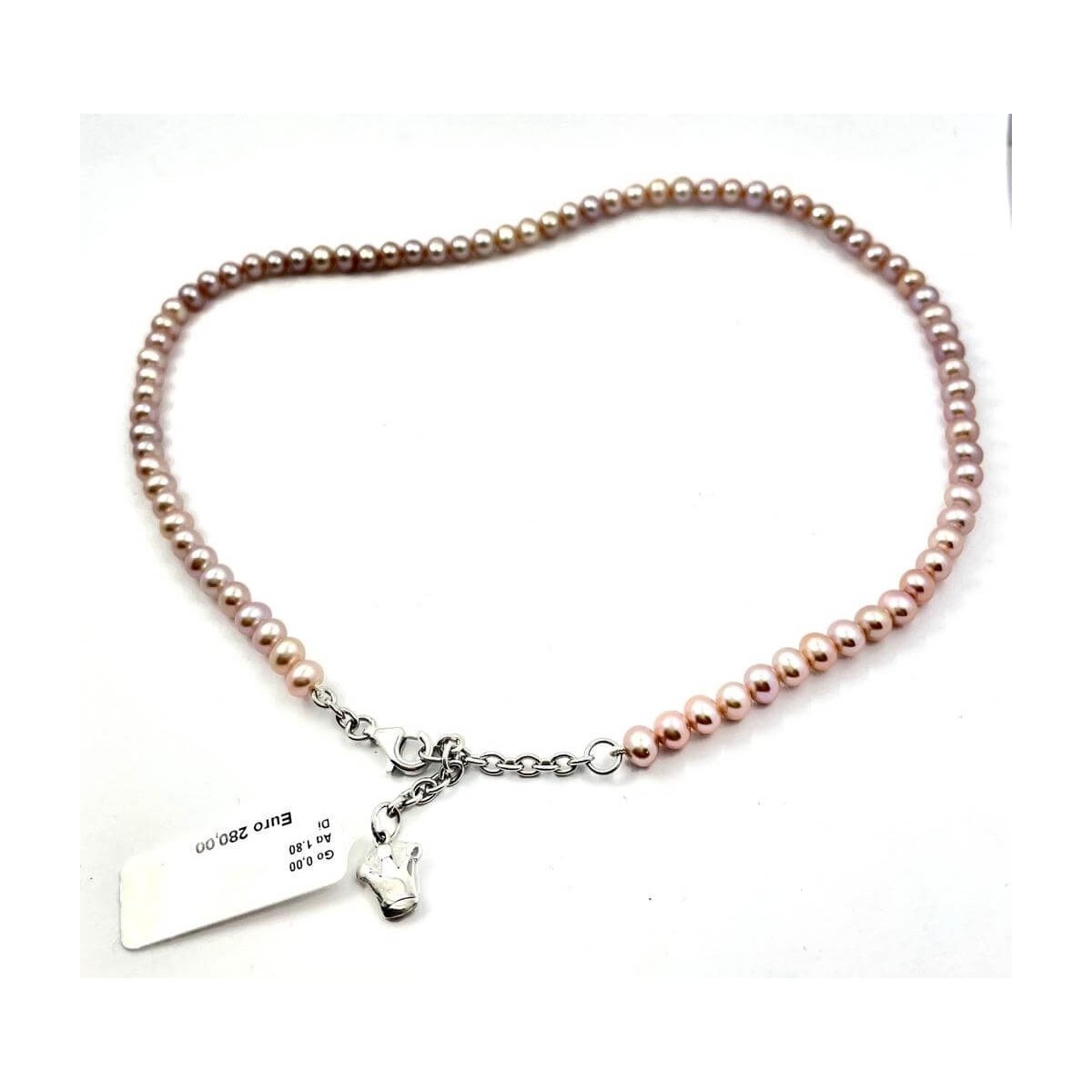 Halskette aus lila/lila elastischen Mimì-Perlen mit einem Durchmesser von 5,5/6 mm mit verstellbarem Verschluss in drei Längen durch eine Kette mit halbmondförmigem Anhänger aus 925er Silber