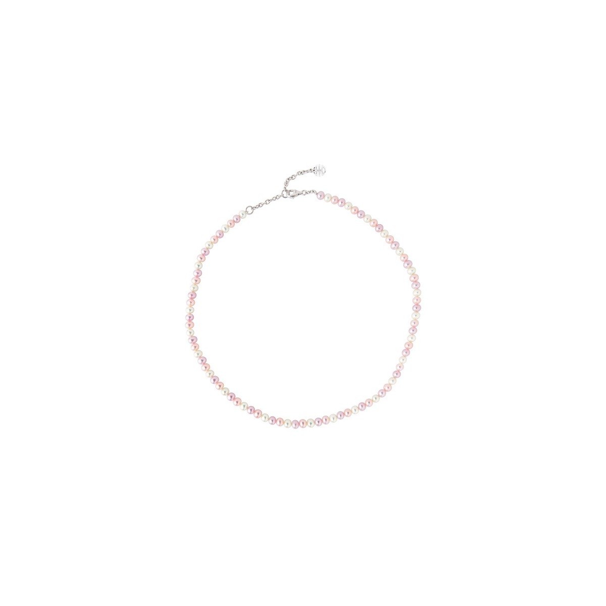 Damenhalskette, Linie Elastica, hergestellt aus mehrfarbigen Perlen von 4 - 4,5 mm und Verschluss mit silbernem Symbol.