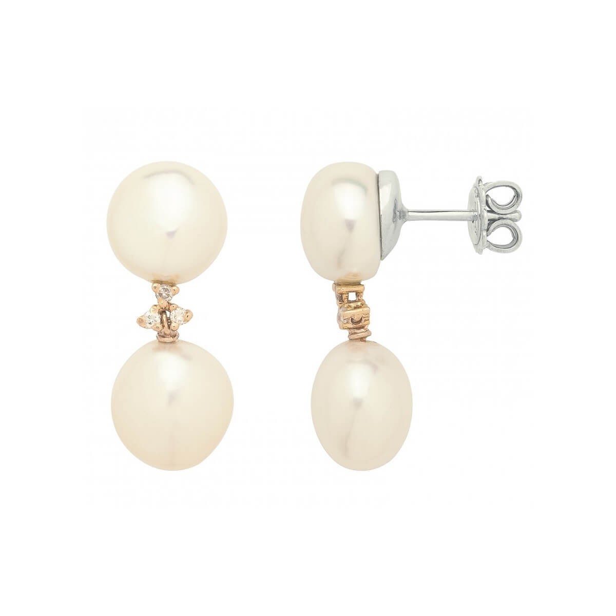 Mimì Blanche Ohrringe mit Barockperlen und Diamanten
