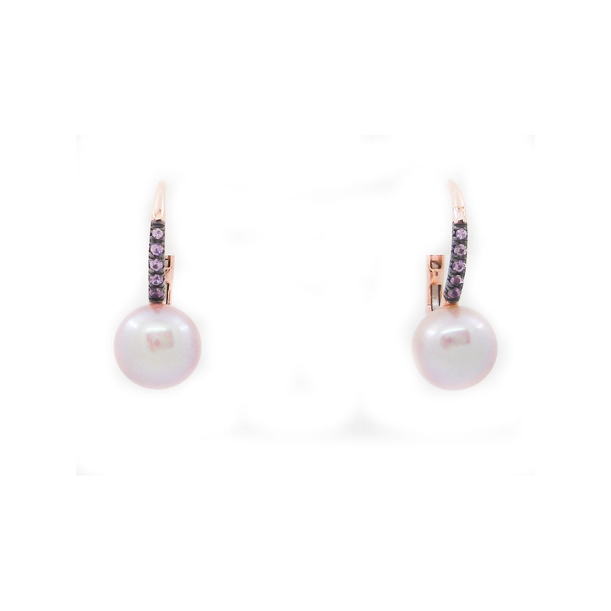 9kt stieg gold Ohrringe mit Perlen es lila Farbe und natürliche Saphire lila Farbe-OK676R3Z3