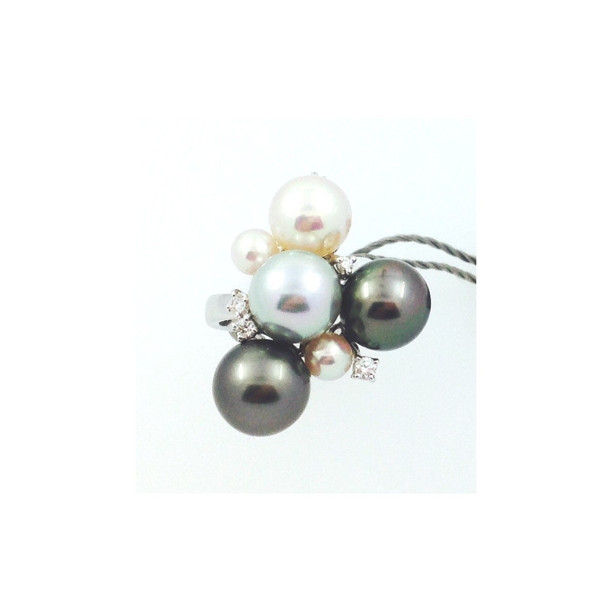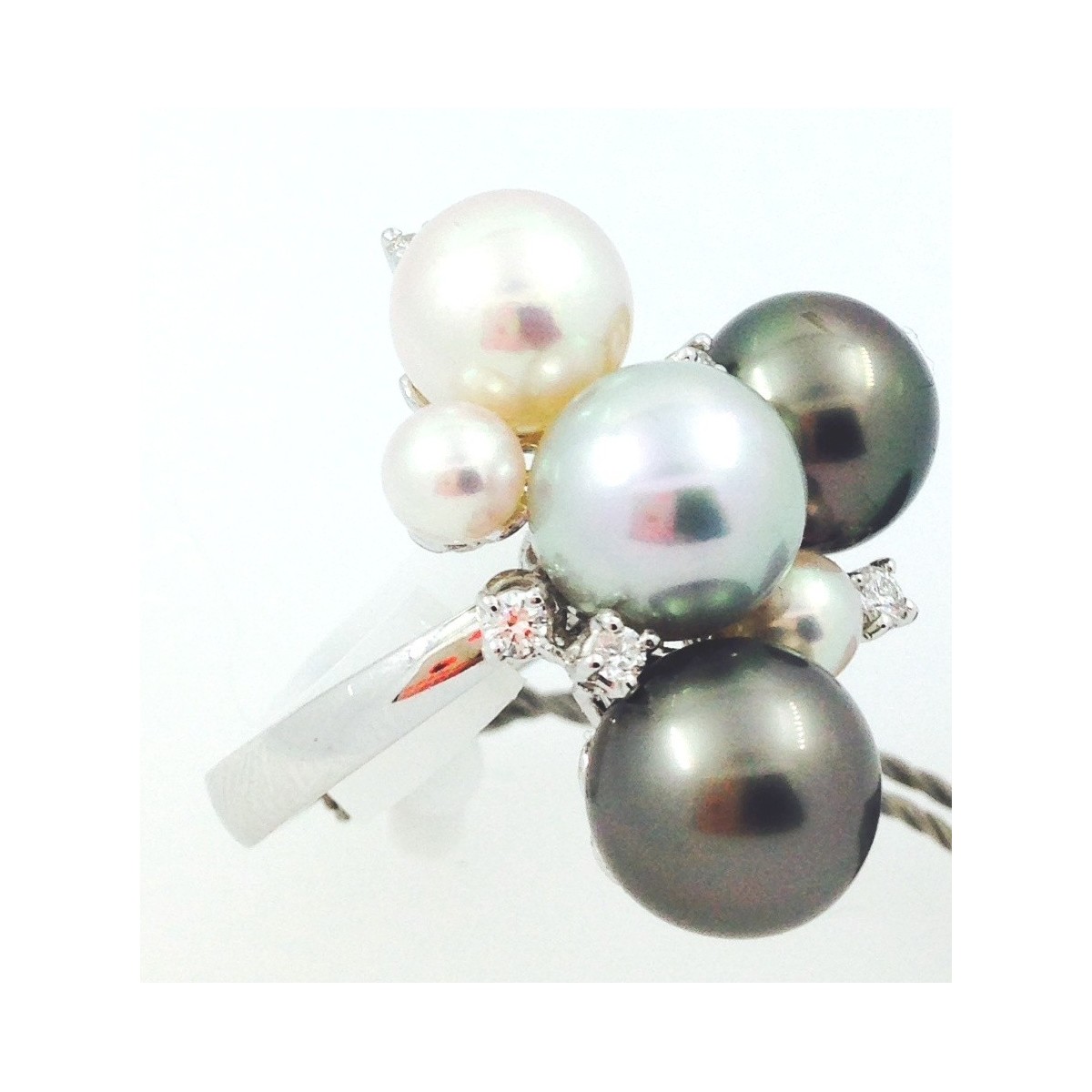 Salvini-Ring in 18 Karat Weißgold mit Perlen multicolor und Runde natürliche Diamanten, Brillant Schliff