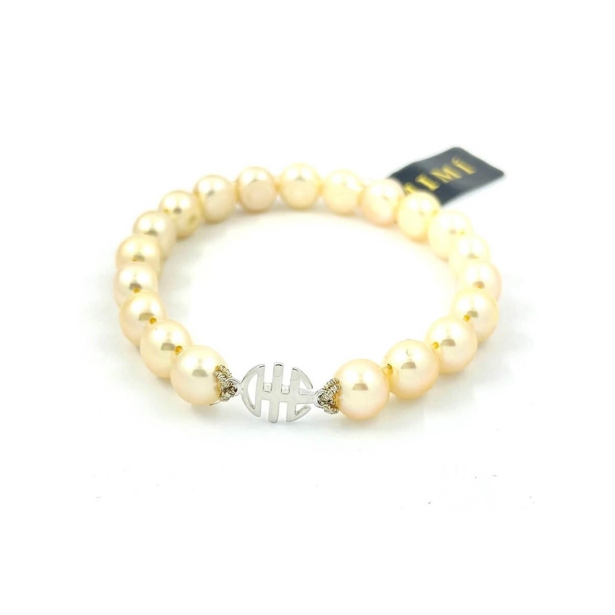 Armband mit cremefarbenen Perlenknöpfen mit Every Bene-Logo in Weißgold Mimì