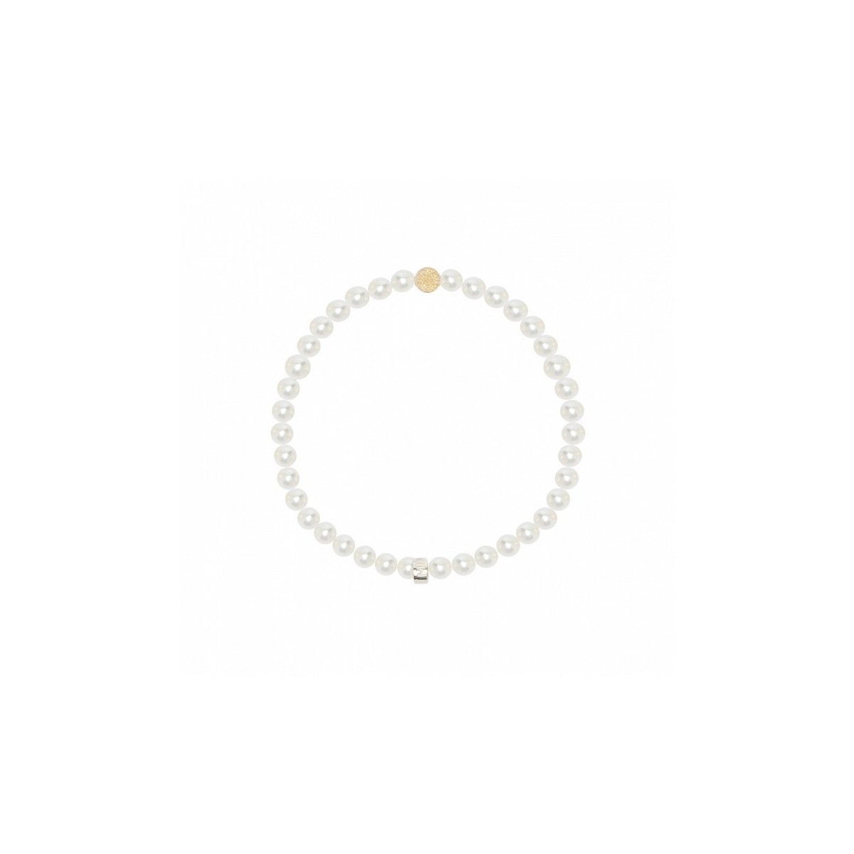 Armband mit weißen Perlen und Gelbgoldkugel Elastica von Mimì