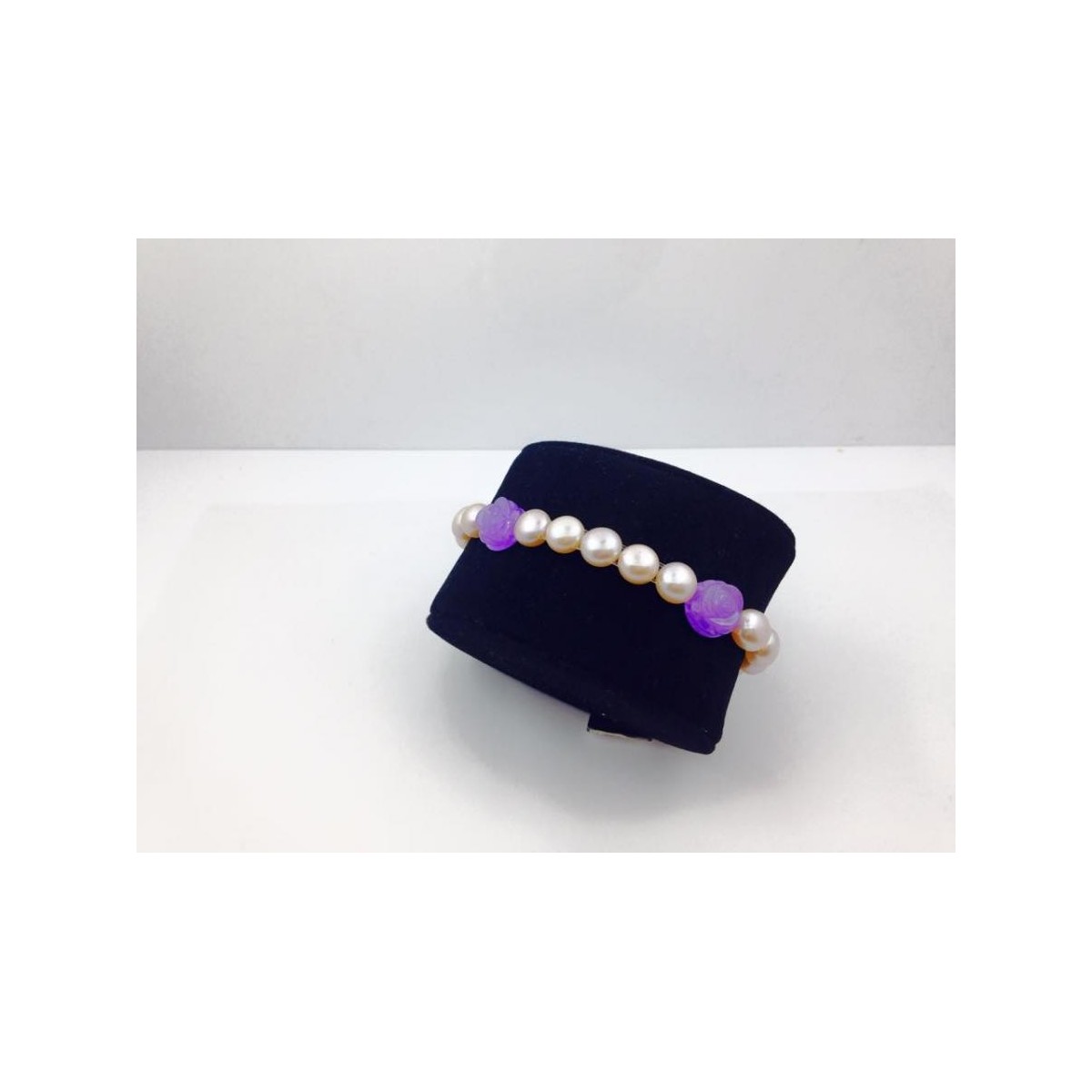 Mimi-Pearl Elastisches Armband mit rosa Knopf und drei Rosen in lila Opal