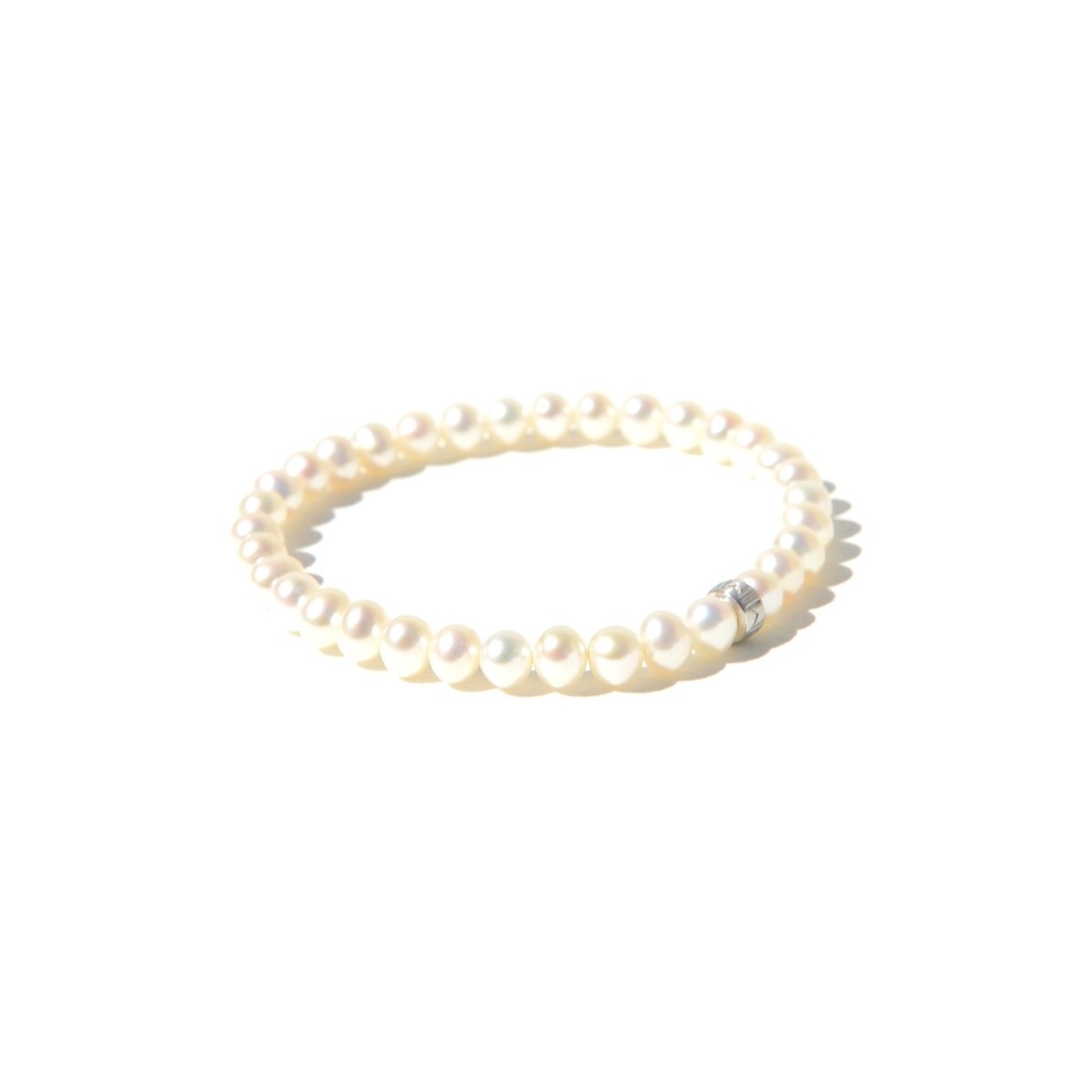 Mimi-Pearl Elastisches Armband Kugel Klein Silber und weiß mit logo