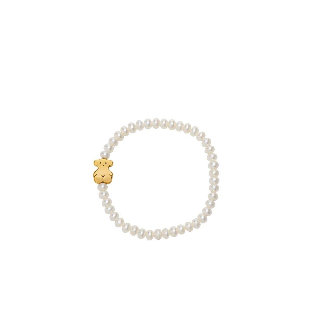 Weissen Perlen Armband Süßwasser natürlichen Gummi-Band mit gold Teddybär
